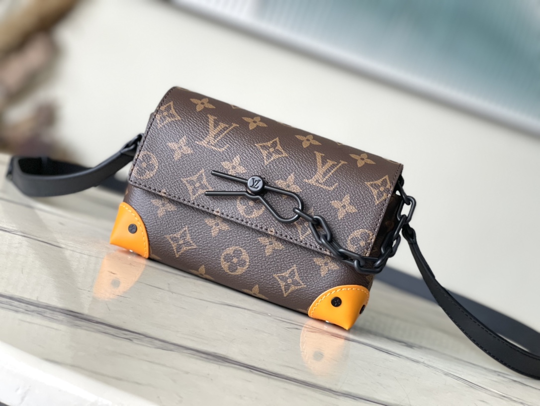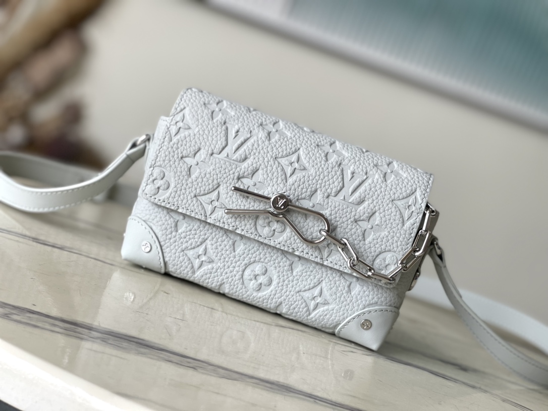 顶级原单 M82579 灰色全皮压花 男包邮差包系列 Steamer邮差包 柔软的 monogram taurillon 皮革 与steamer 风格链条等经典元素相得益彰。配有可调节肩带,便于背携。拉链隔层收纳空间充裕,搭配前袋翻盖和磁铁锁扣,确保物品安全无虞。