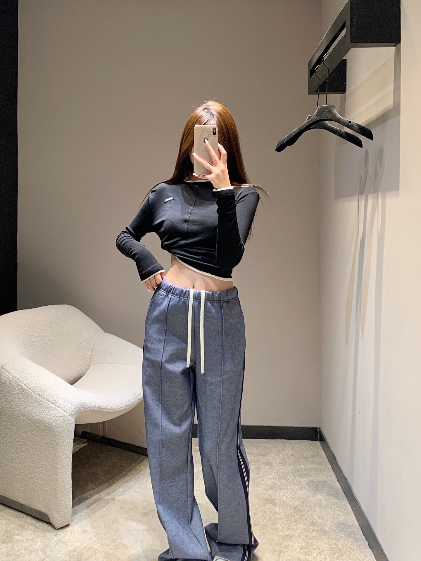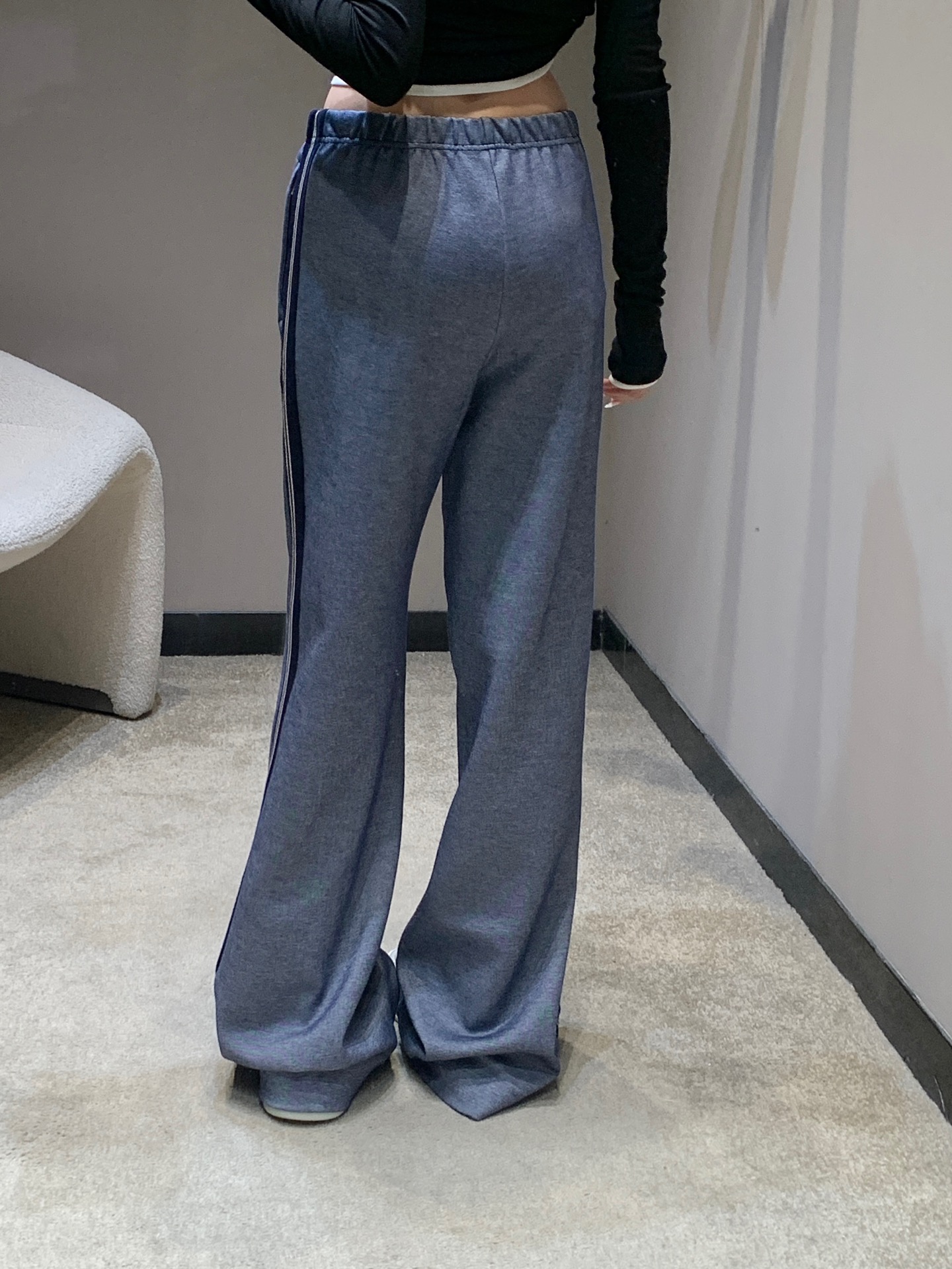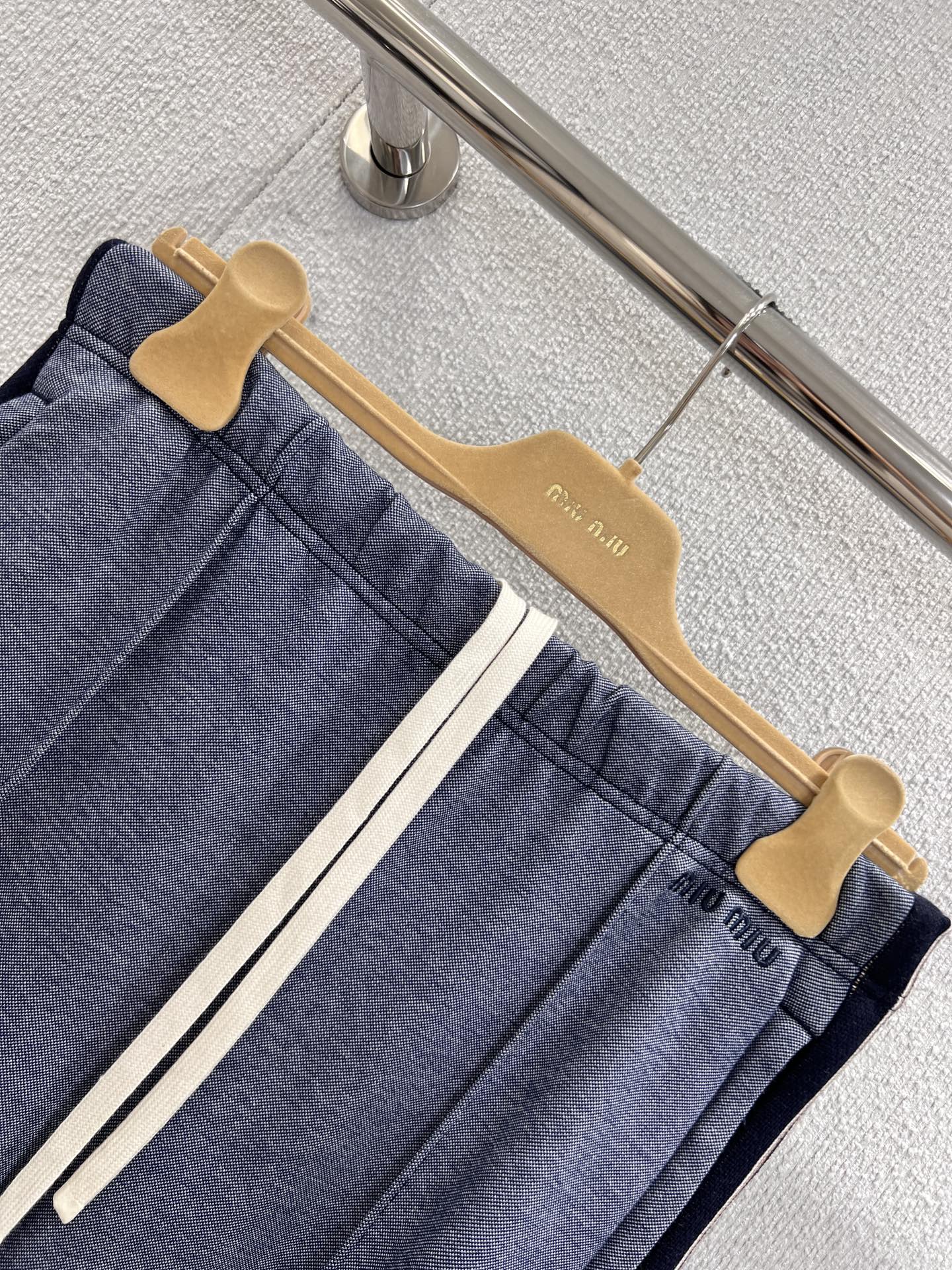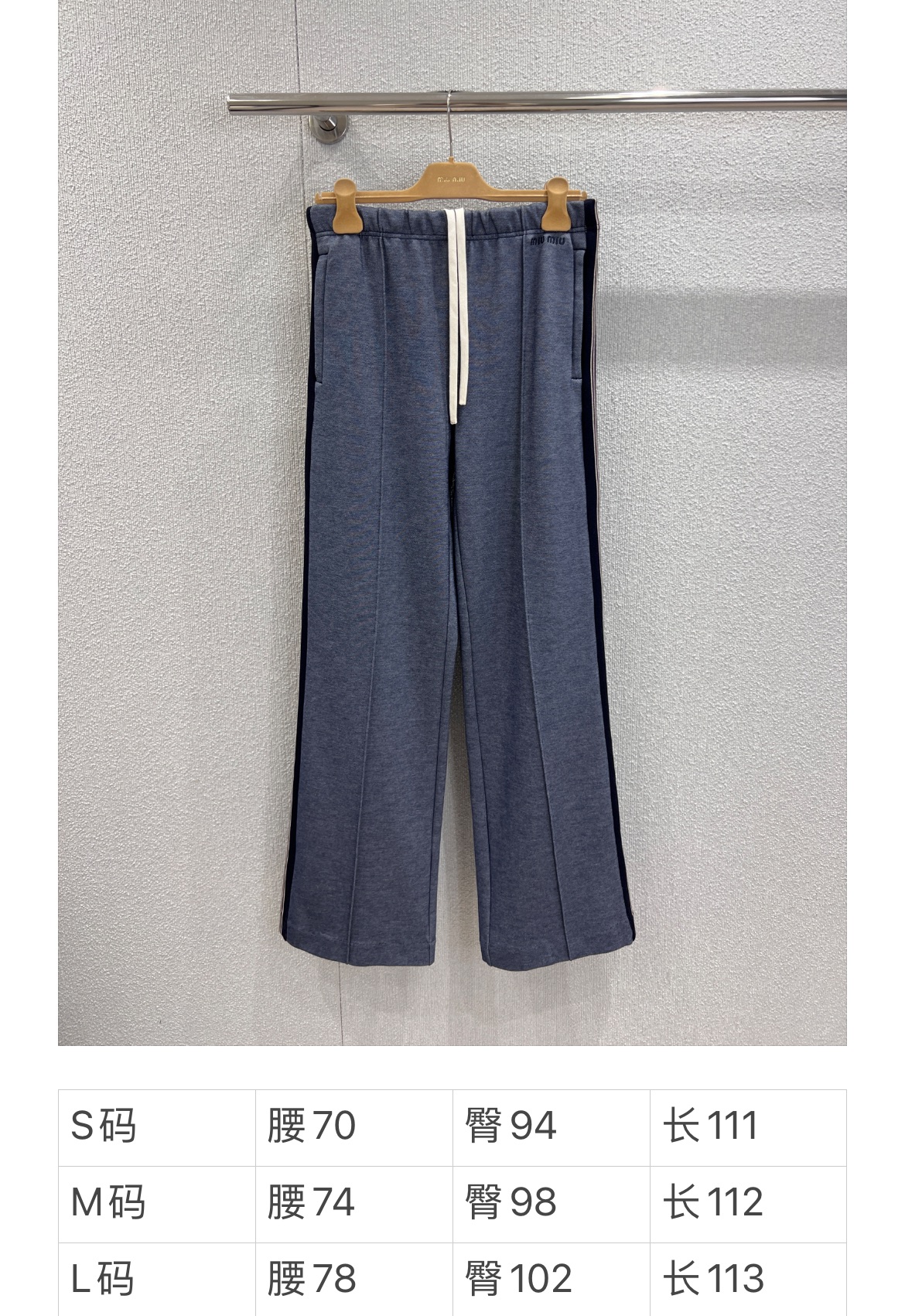 Miumi* 25FW秋冬新款 织带边休闲长裤丨⚠独家yb开发!高版出品!侧边的撞色织带贯穿裤身,像是给双腿加了“延伸特效”,视觉上瞬间拉长比例。松紧腰头搭配米白色抽绳,随性中带着点美式复古感;裤型是慵懒的阔腿剪裁,却又在垂坠感里藏着利落线条,走路带风的同时,把“甜酷慵懒感”焊在身上。裤腰处的字母标识,低调又有辨识度,现货发售S/M/L尺