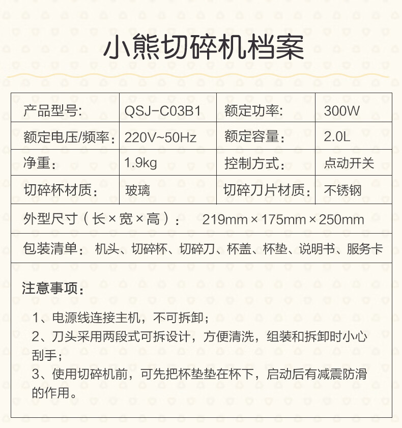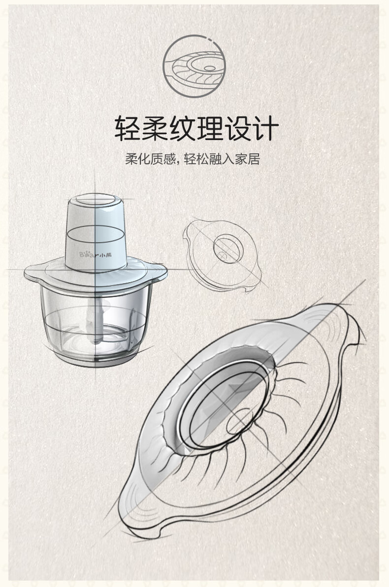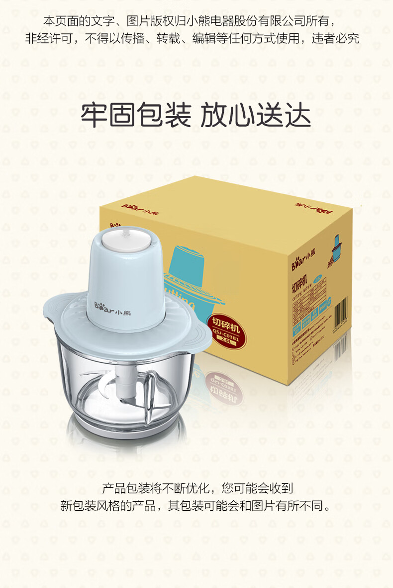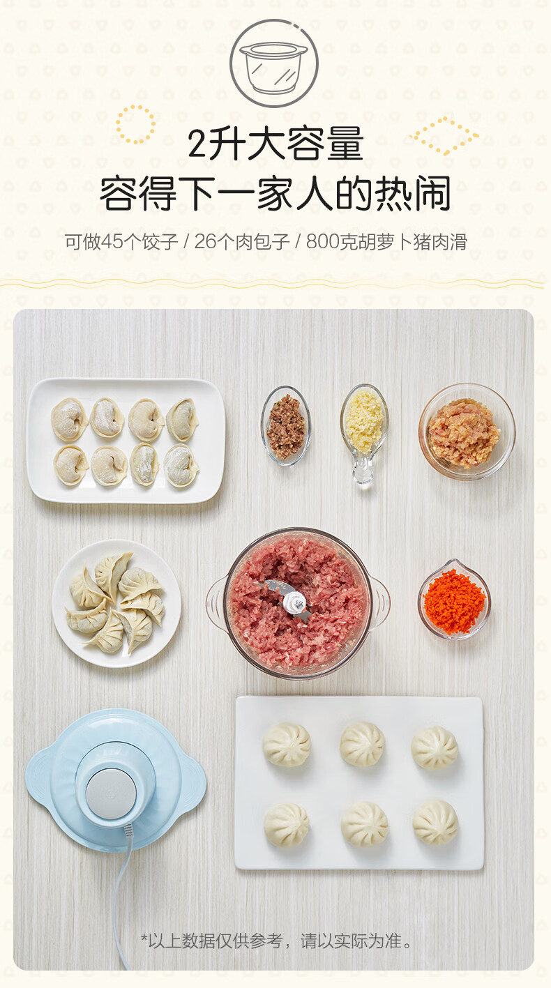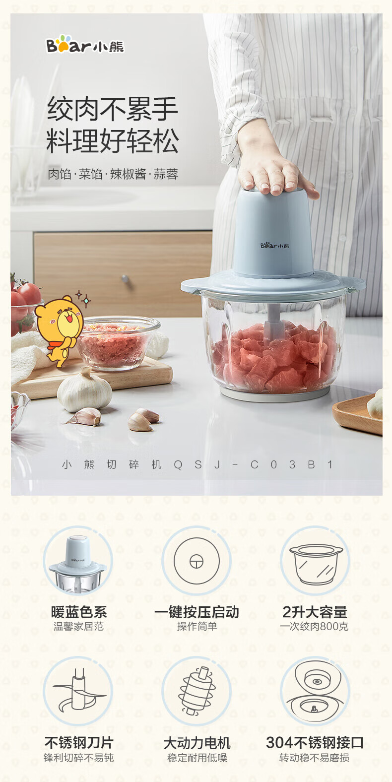 小熊(Bear)2升绞肉机 家用电动玻璃多能料理机绞馅机碎肉打肉机切菜搅拌机QSJ-C03B1[蓝色]