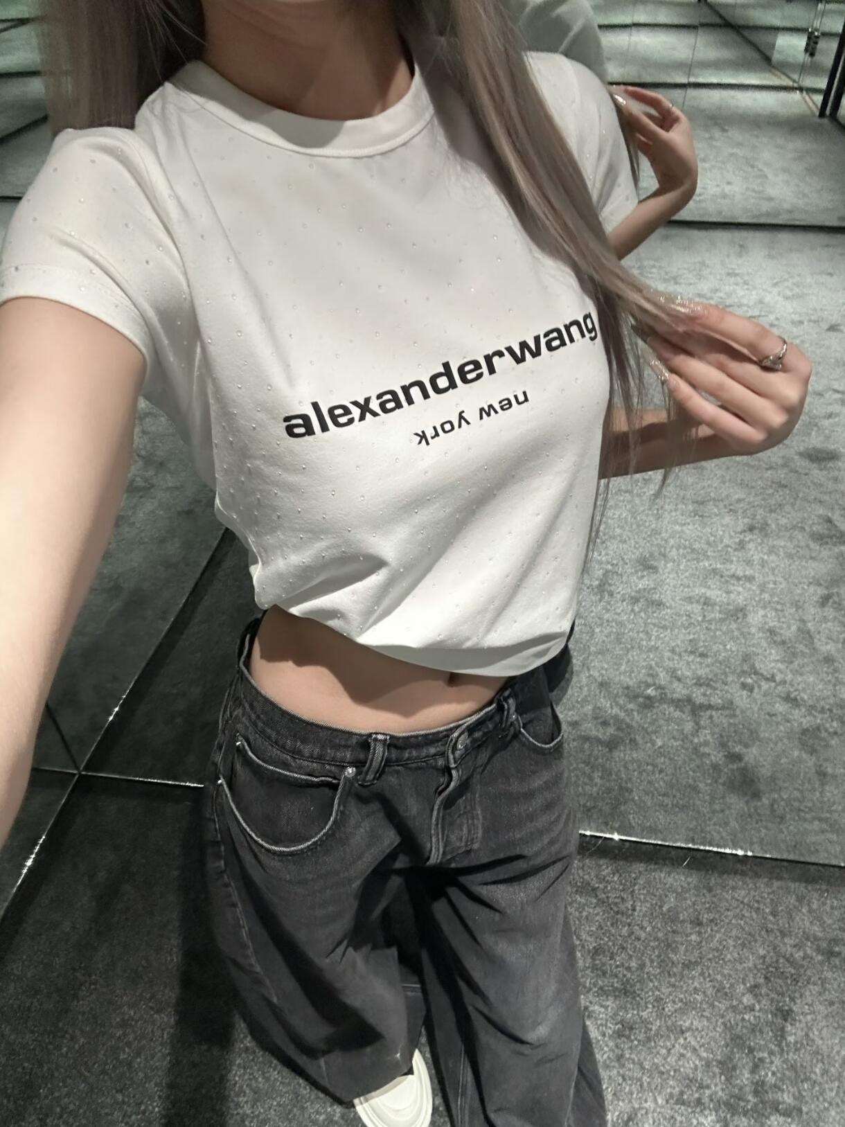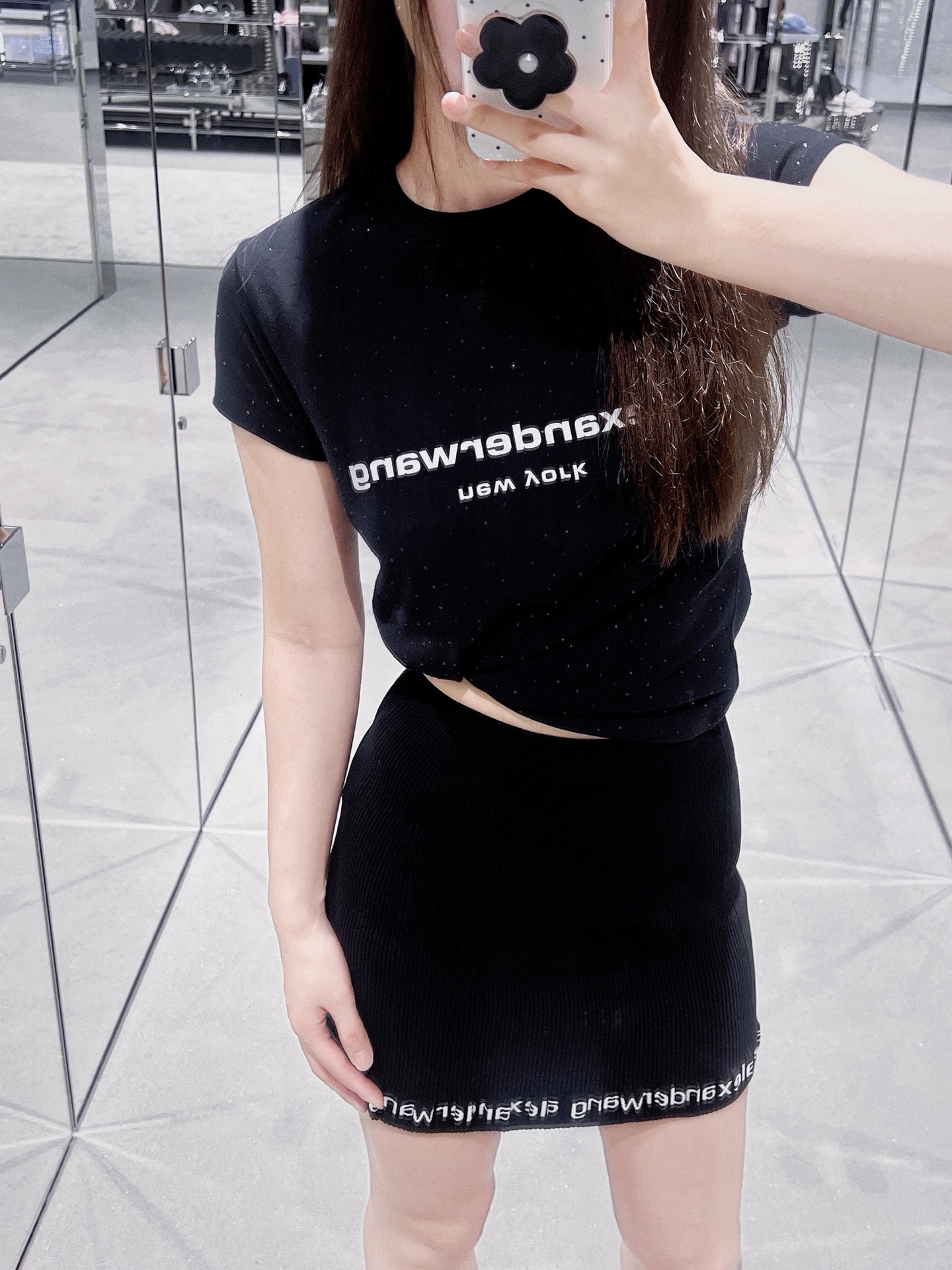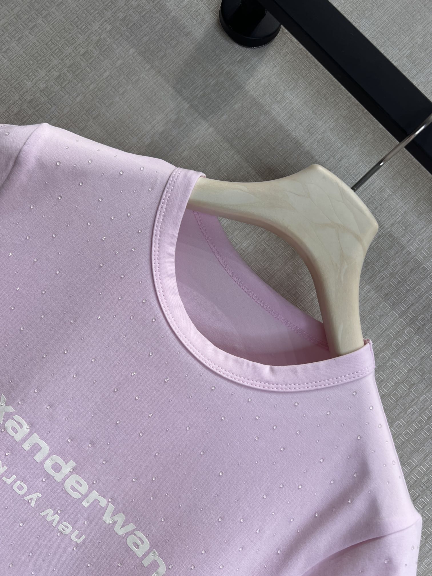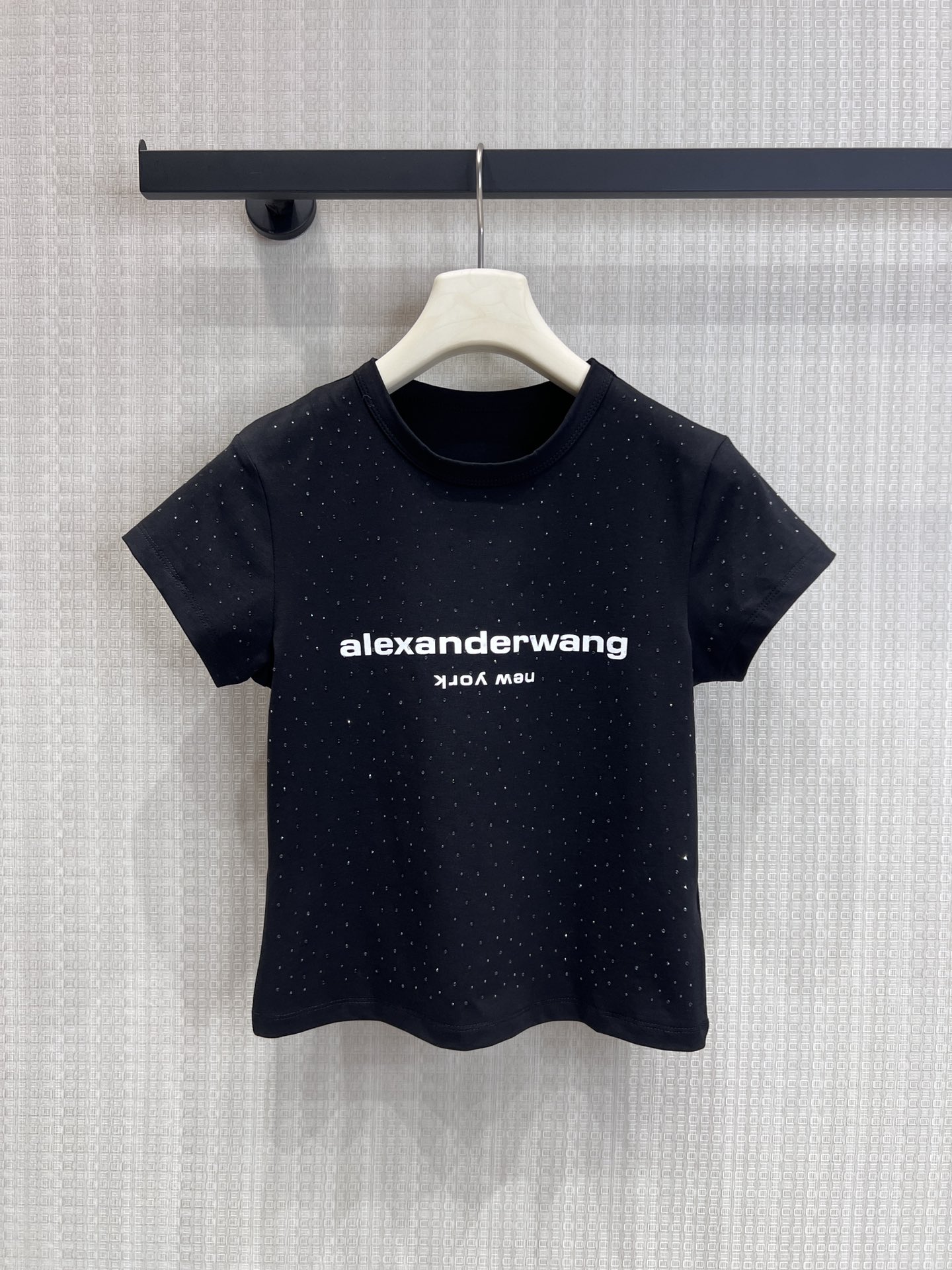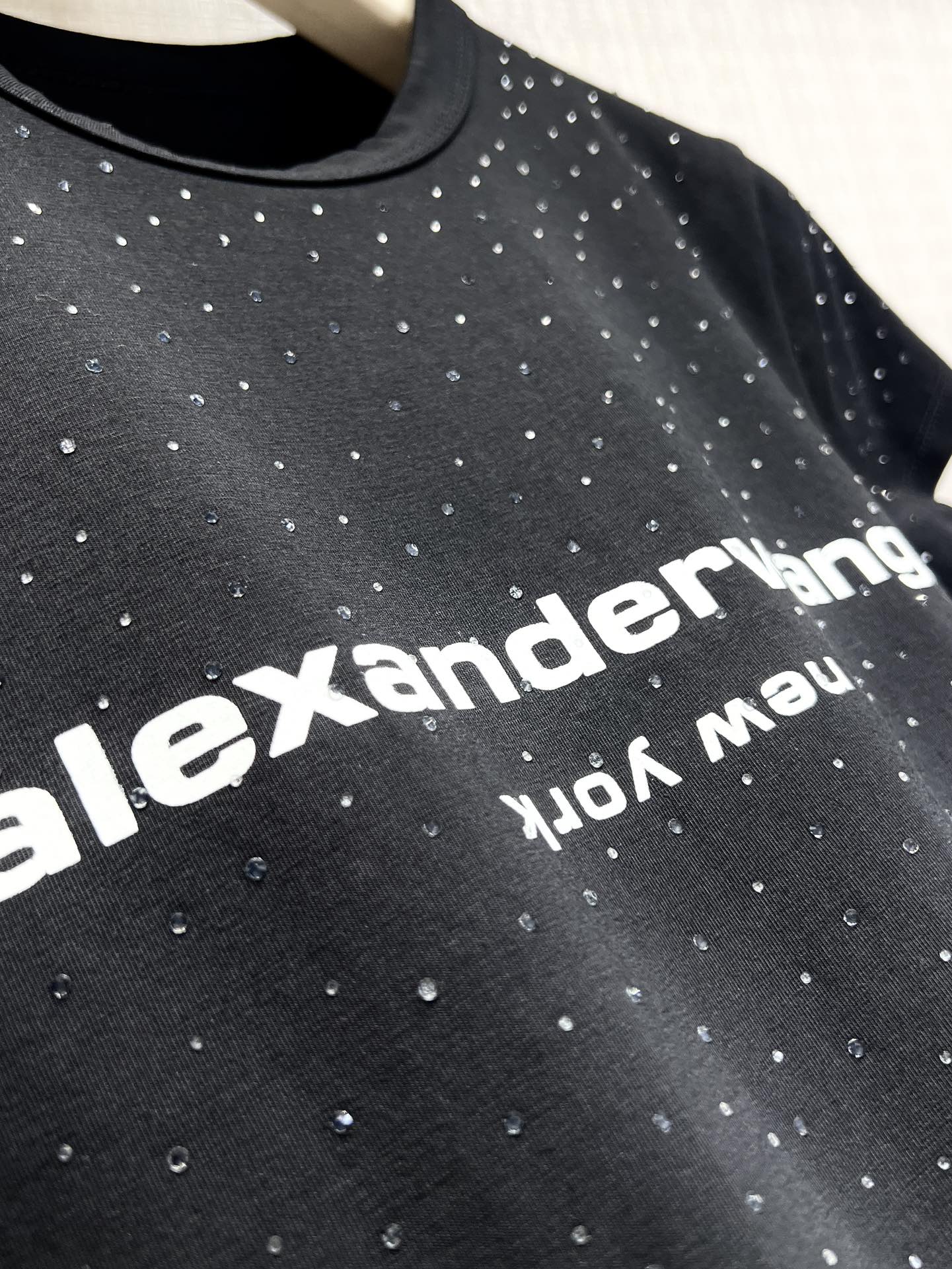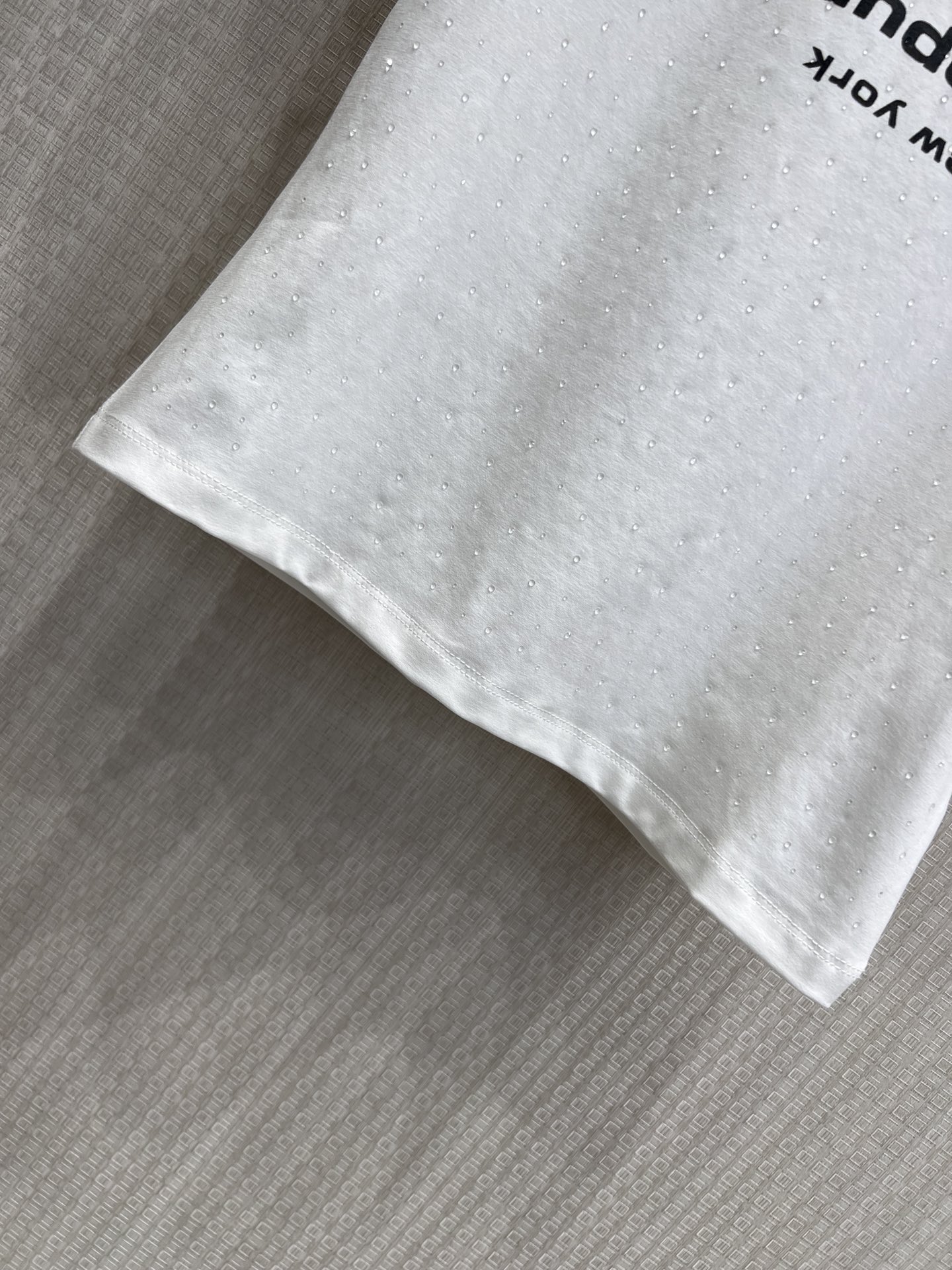 Aw* 26SS春夏新款 字母印花满水晶烫钻修身短袖圆领T恤丨⚠独家yb开发!顶级高版出品!高弹亲肤的棉质混纺面料,软糯透气且贴合身形,修身微短版型,对身材包容度高,小圆领+修身短款剪裁,精准勾勒腰线,轻松打造露腰辣妹风。既能凸显曲线又不会过于紧绷,适配各种身材的辣妹穿搭。现货发售S/M/L