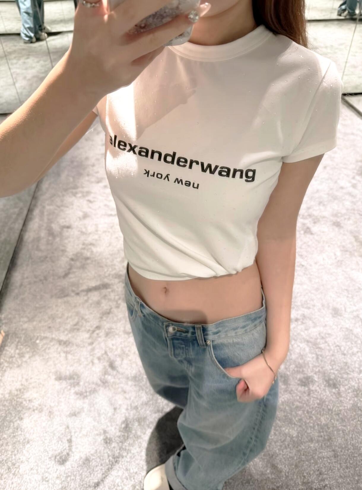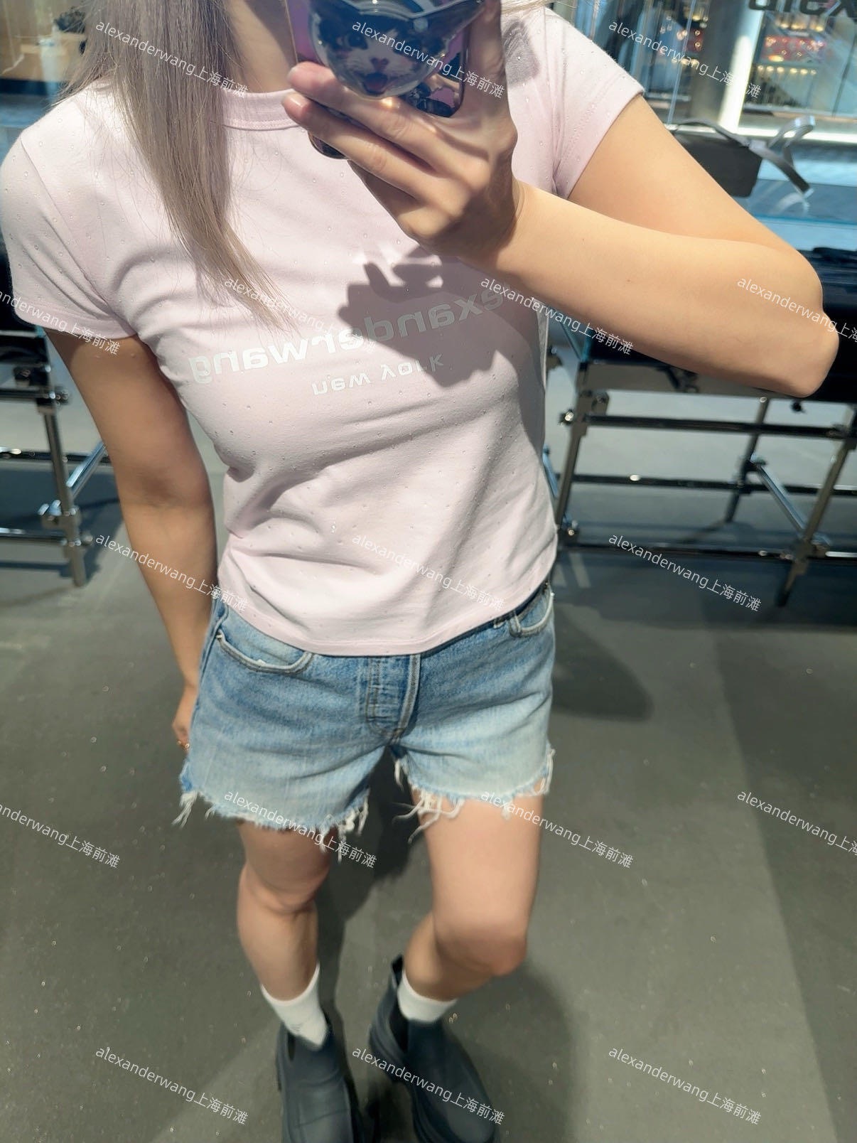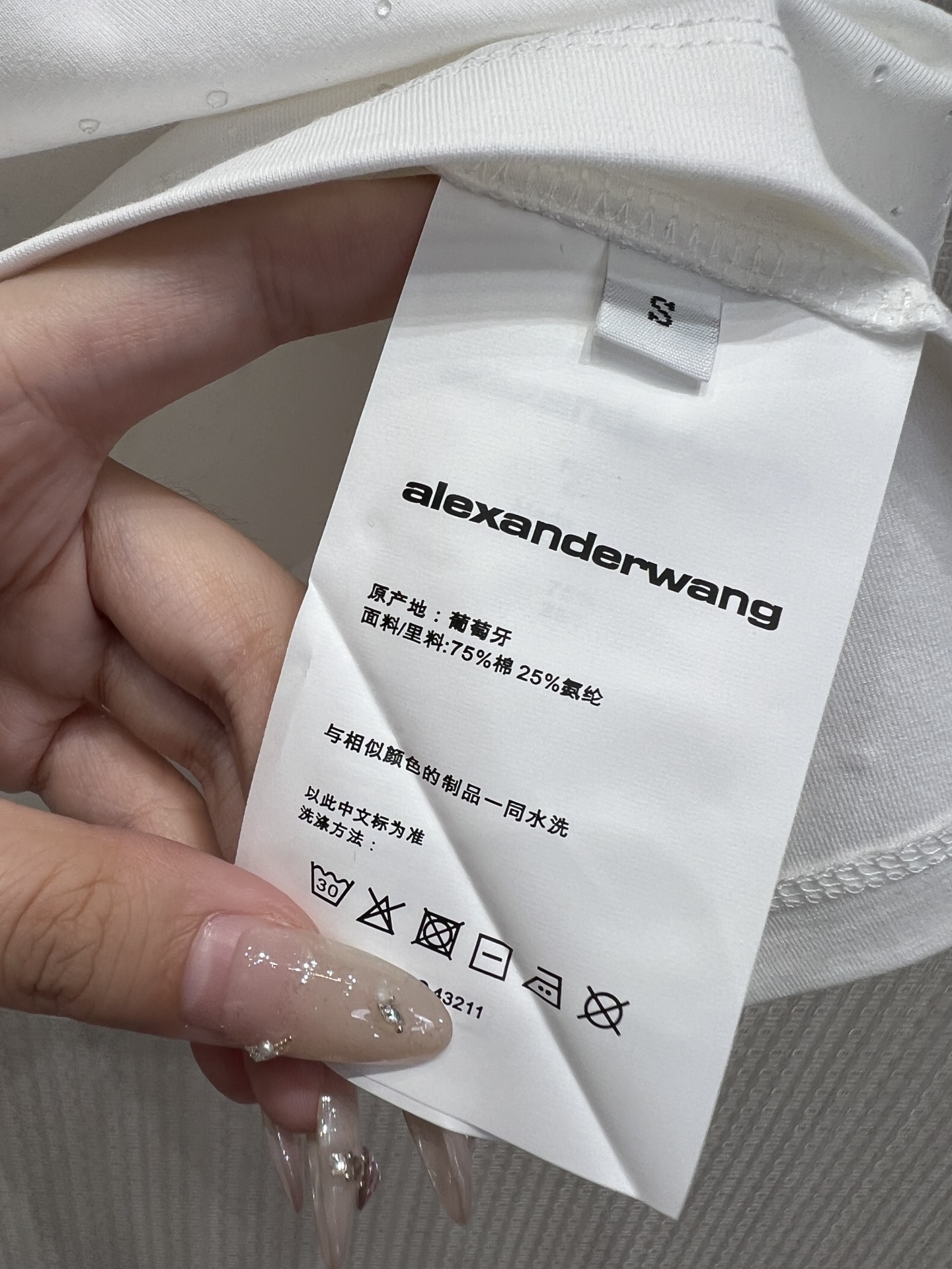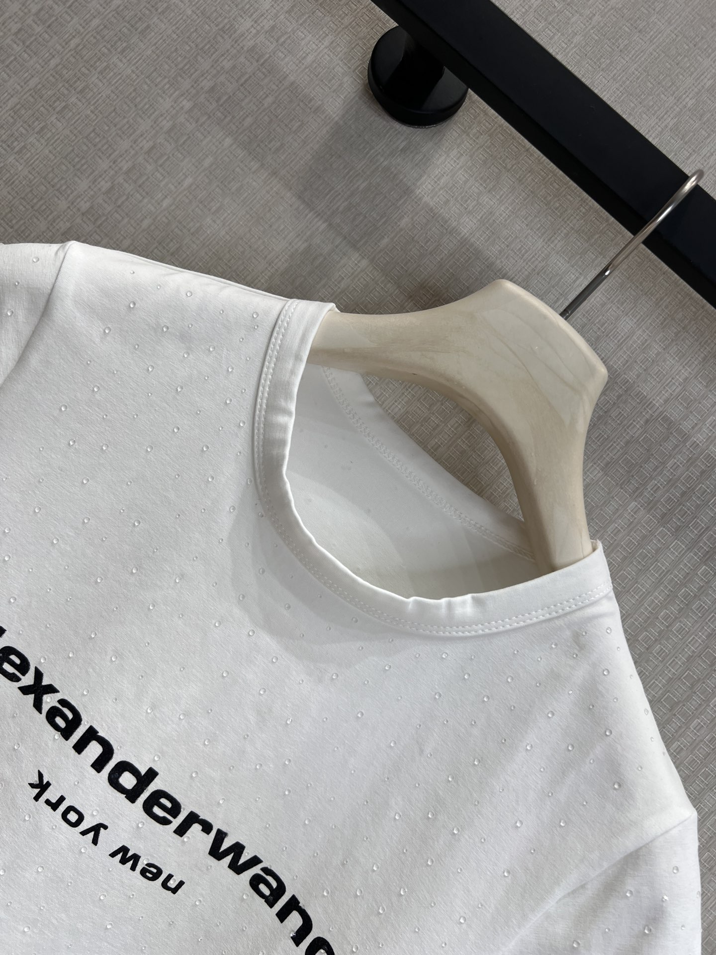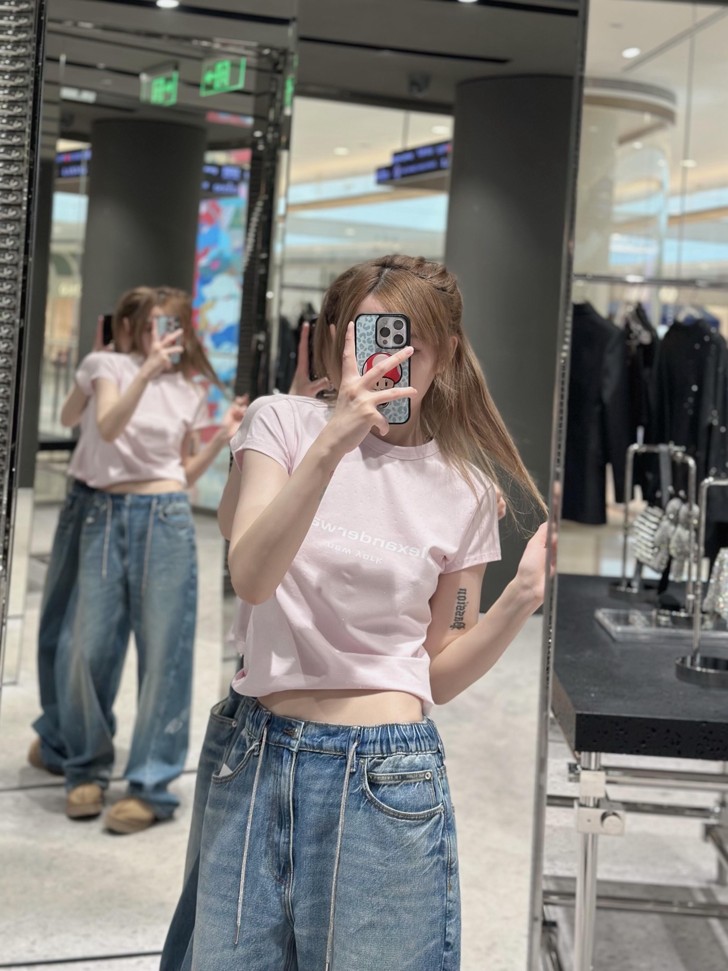 Aw* 26SS春夏新款 字母印花满水晶烫钻修身短袖圆领T恤丨⚠独家yb开发!顶级高版出品!高弹亲肤的棉质混纺面料,软糯透气且贴合身形,修身微短版型,对身材包容度高,小圆领+修身短款剪裁,精准勾勒腰线,轻松打造露腰辣妹风。既能凸显曲线又不会过于紧绷,适配各种身材的辣妹穿搭。现货发售S/M/L