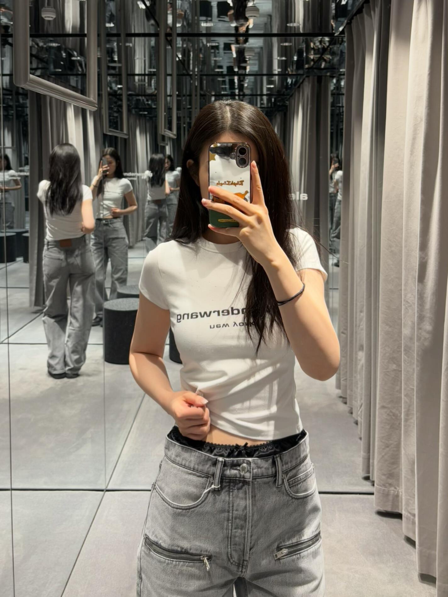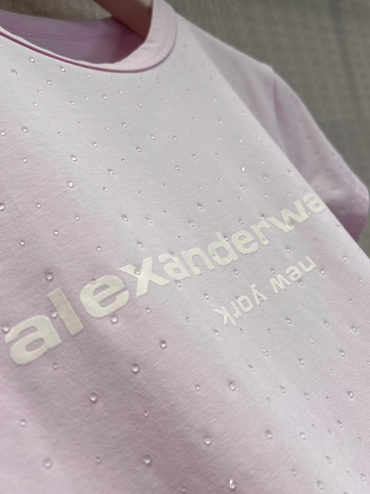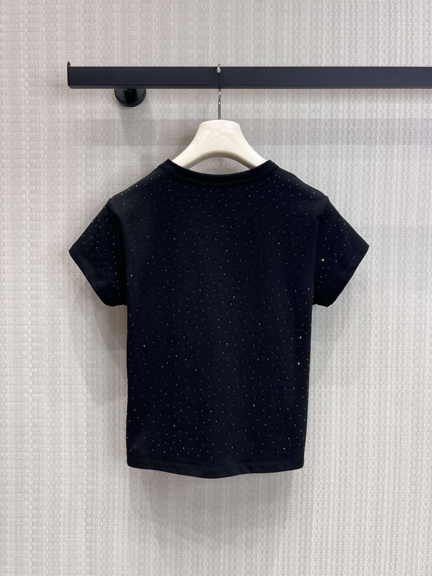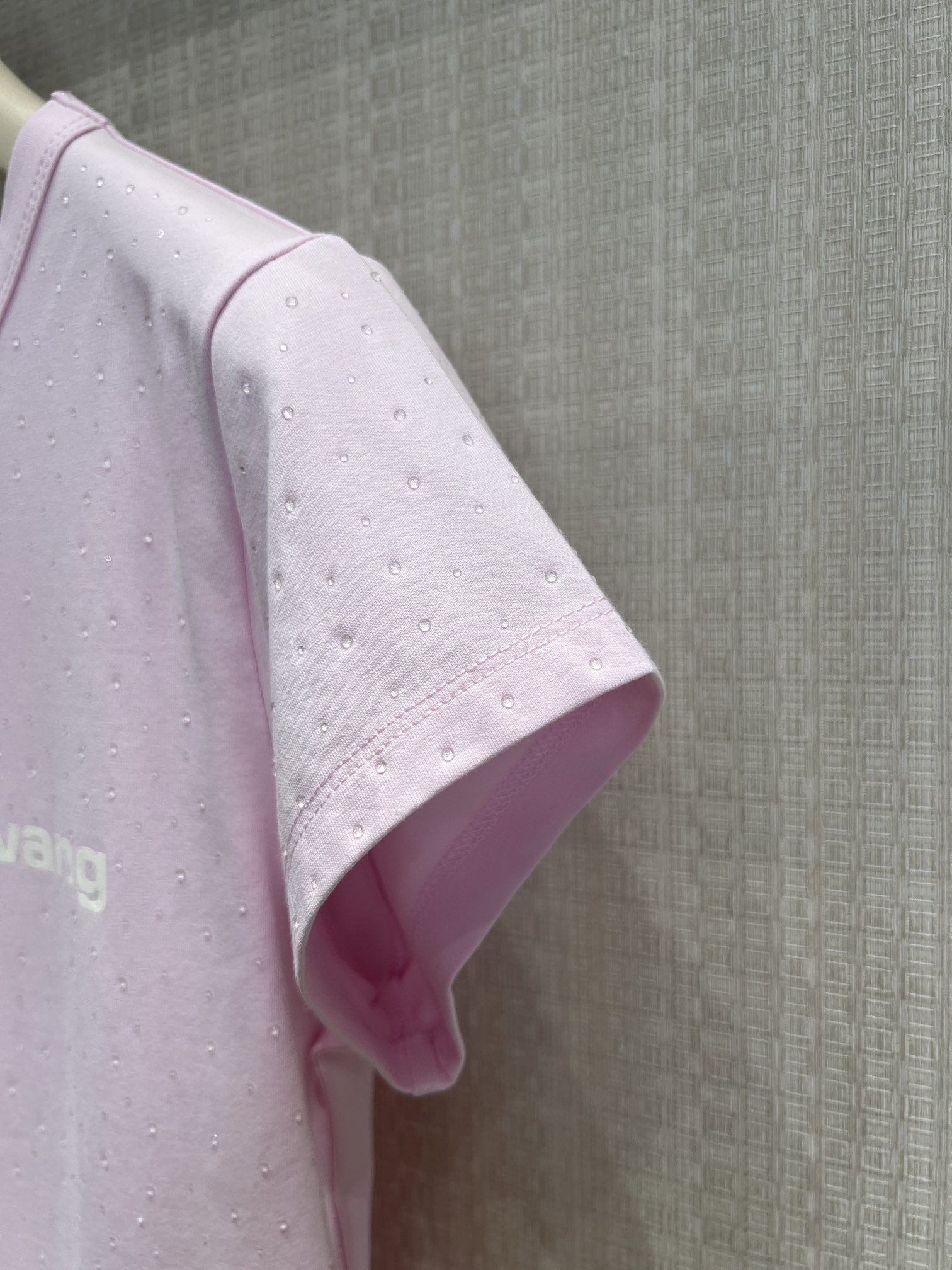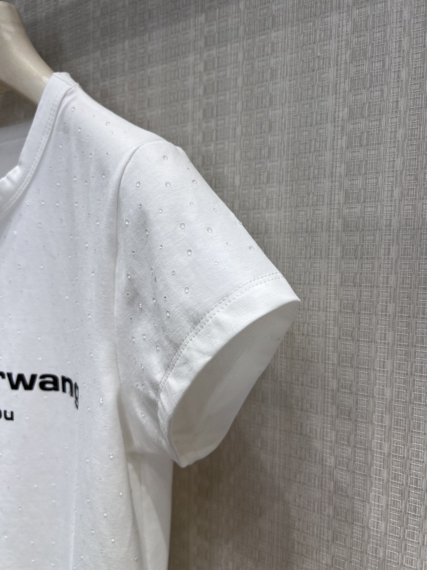 Aw* 26SS春夏新款 字母印花满水晶烫钻修身短袖圆领T恤丨⚠独家yb开发!顶级高版出品!高弹亲肤的棉质混纺面料,软糯透气且贴合身形,修身微短版型,对身材包容度高,小圆领+修身短款剪裁,精准勾勒腰线,轻松打造露腰辣妹风。既能凸显曲线又不会过于紧绷,适配各种身材的辣妹穿搭。现货发售S/M/L