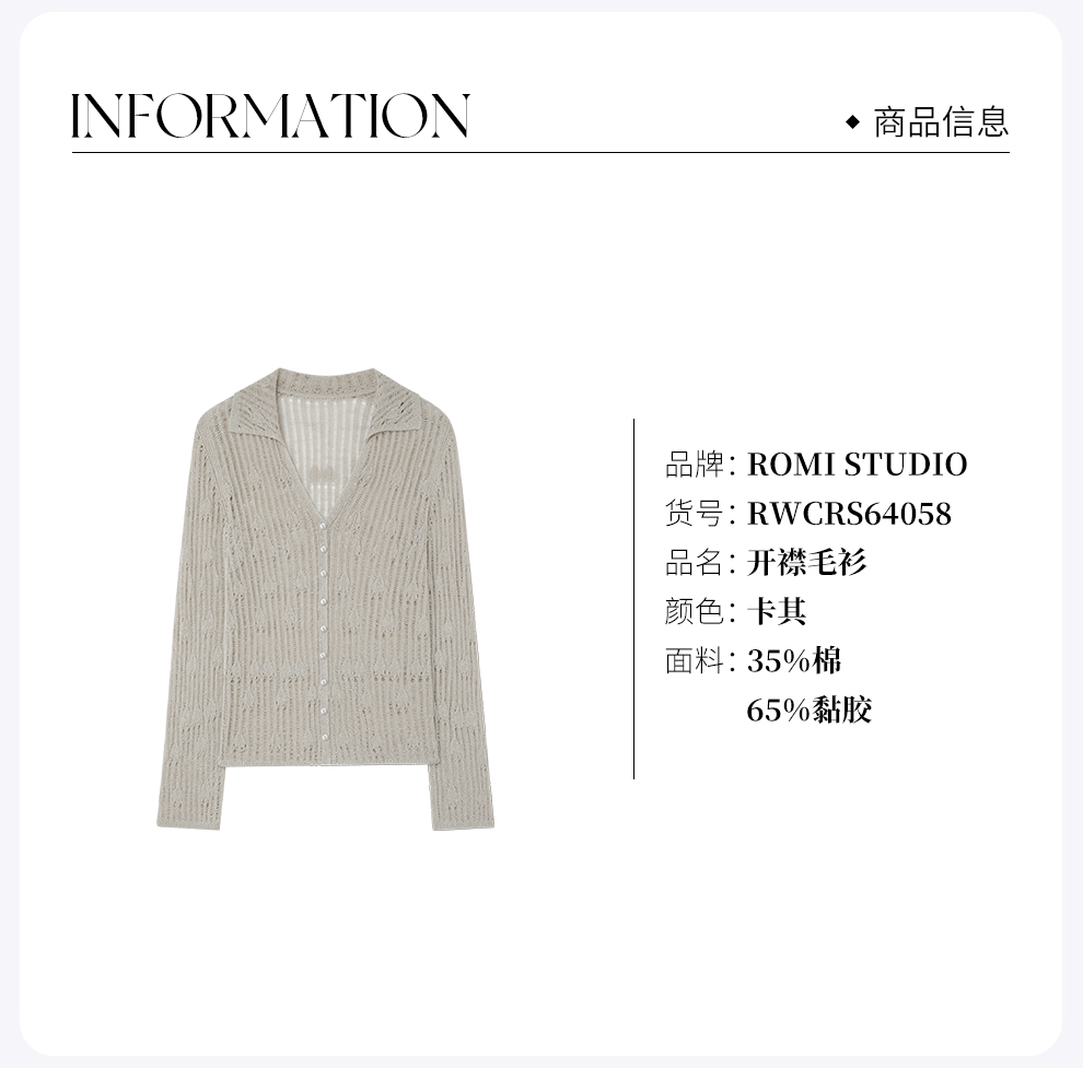 ROMI STUDIO 法式慵懒修身剪裁 镂空Polo领针织开衫 RWCRS64058