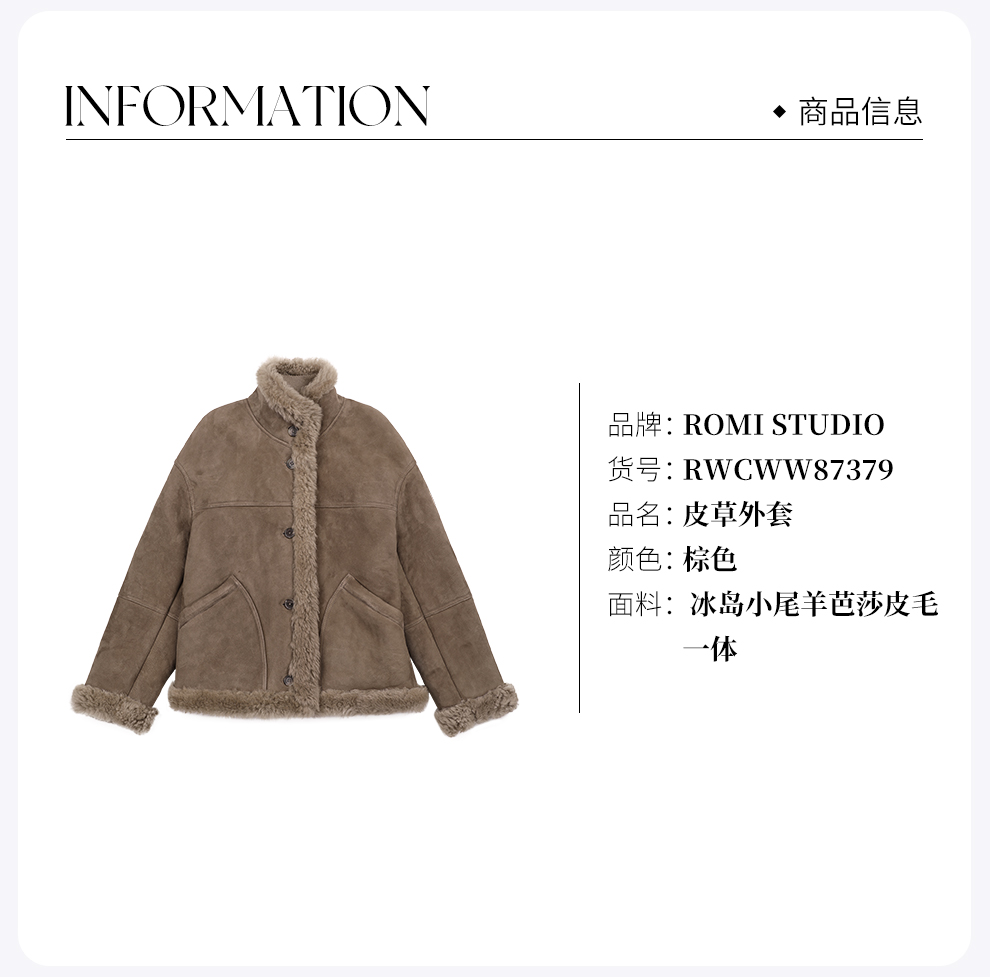 ROMI STUDIO冰岛绵羊皮细腻绒面皮毛一体蓬松毛面皮草 RWCWW87379