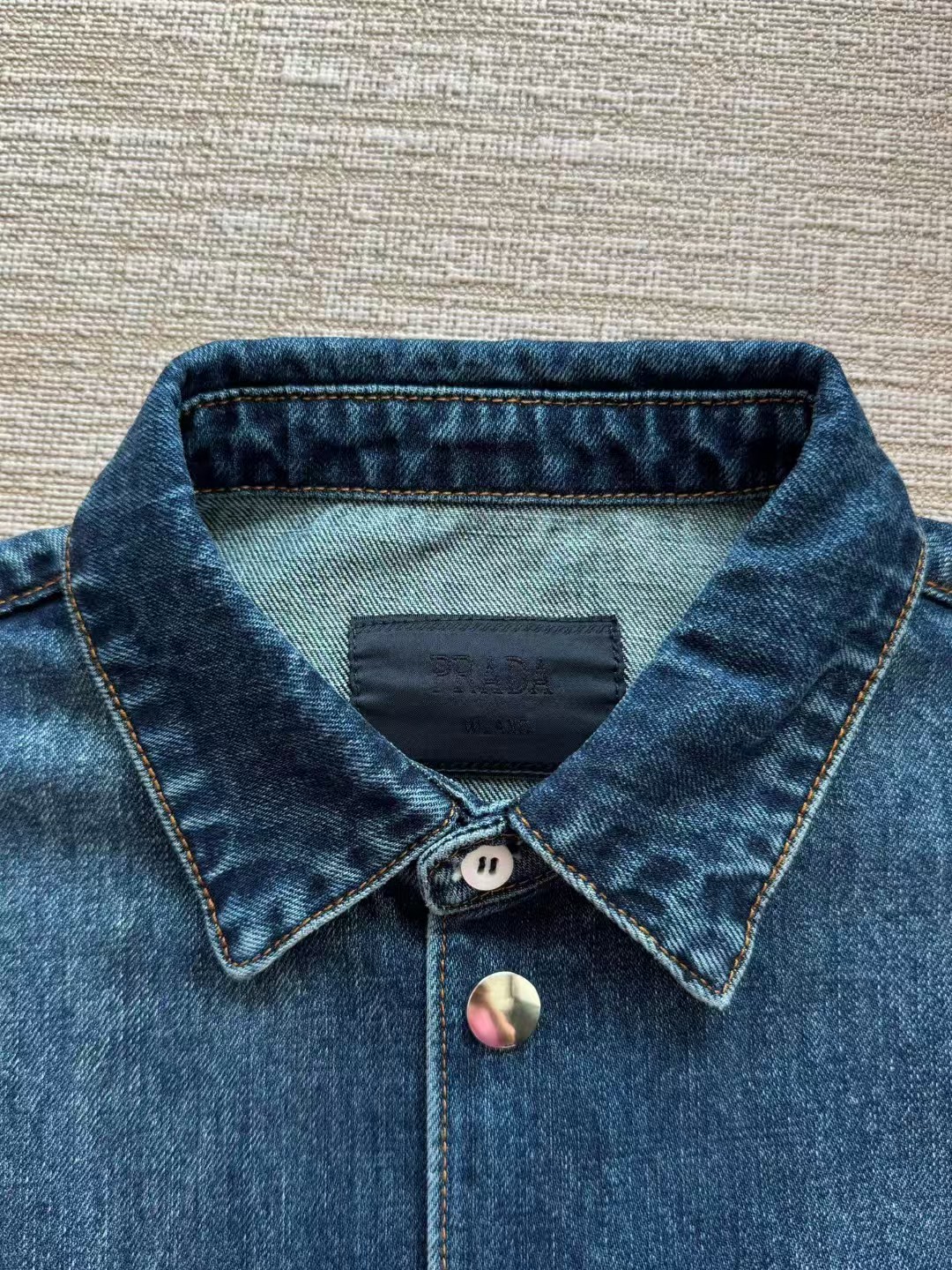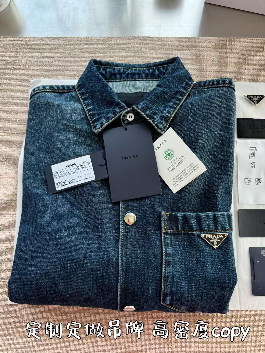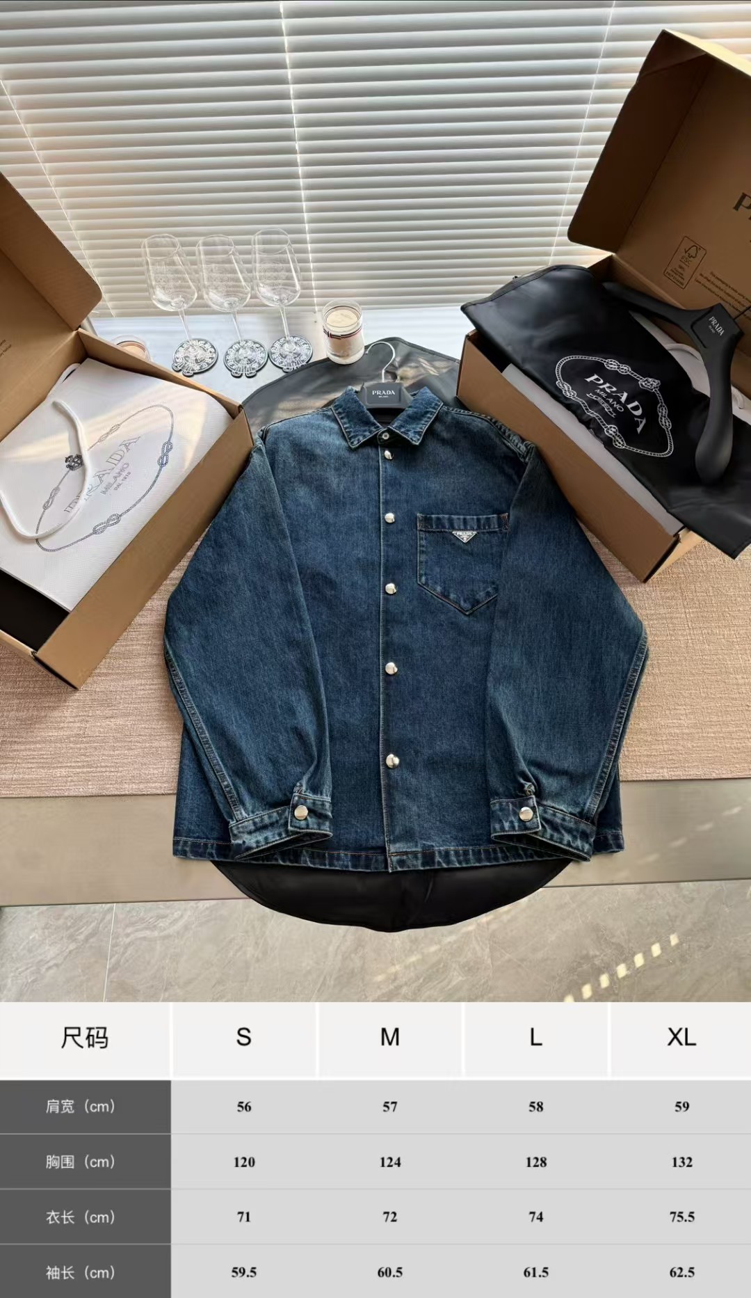 PRADA普拉达丹宁三角标牛仔外套,低调奢华简洁款✌️整件衣服12100购买ZP拆解打造,15次洗水调色最终成型,刻模定制最新手工三角新标,真正做到1:1copy 闭眼入 码数:S M L XL