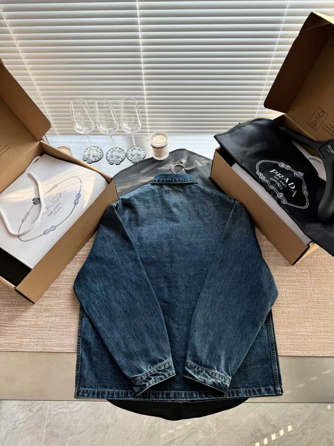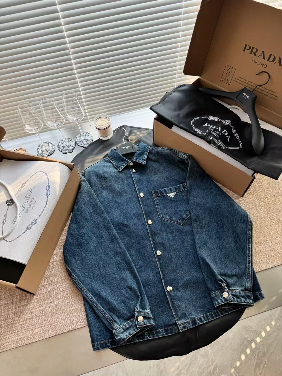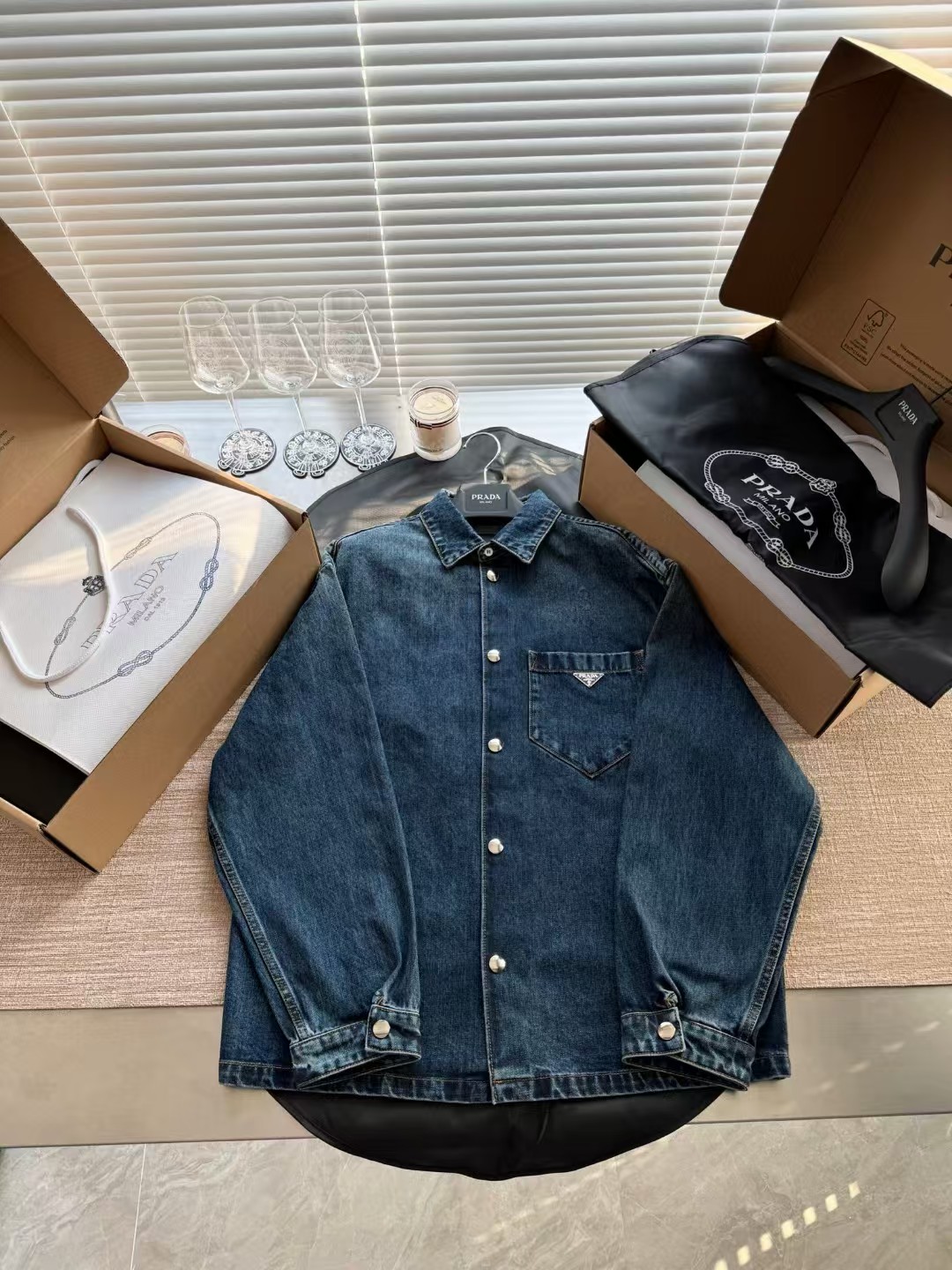 PRADA普拉达丹宁三角标牛仔外套,低调奢华简洁款✌️整件衣服12100购买ZP拆解打造,15次洗水调色最终成型,刻模定制最新手工三角新标,真正做到1:1copy 闭眼入 码数:S M L XL