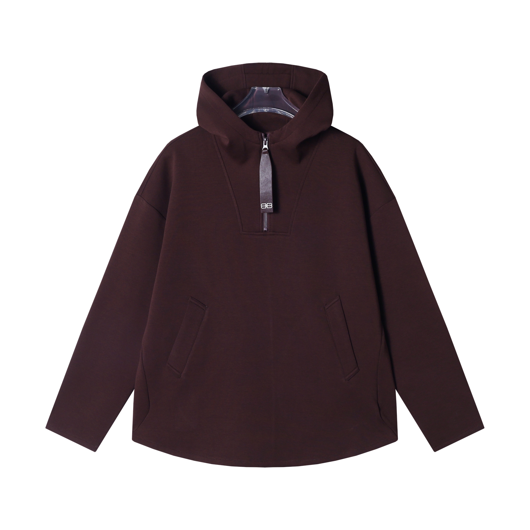 WY649秋冬季新款时尚个性美式纯色压线半拉链连帽卫衣情侣宽松户外上衣