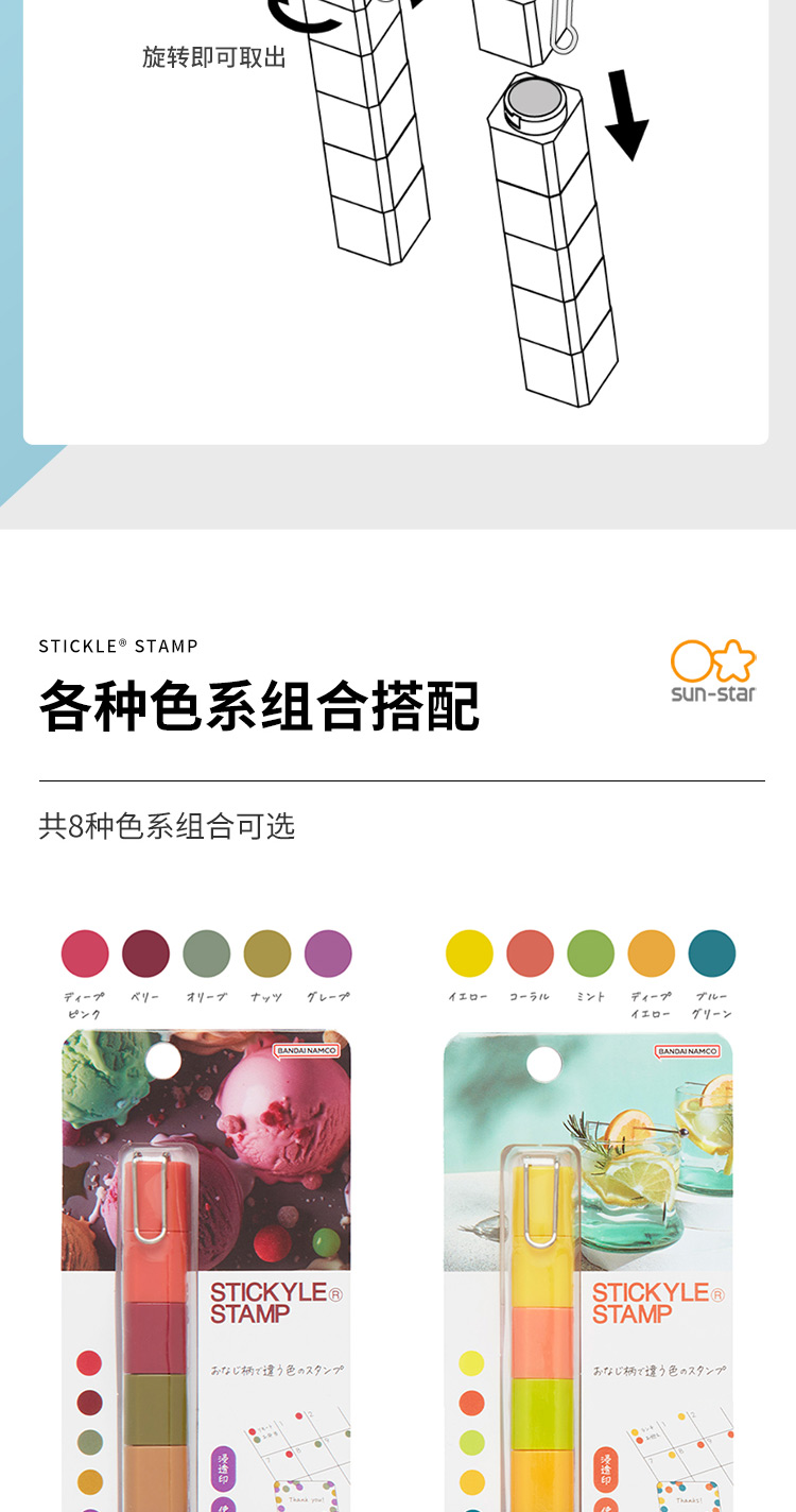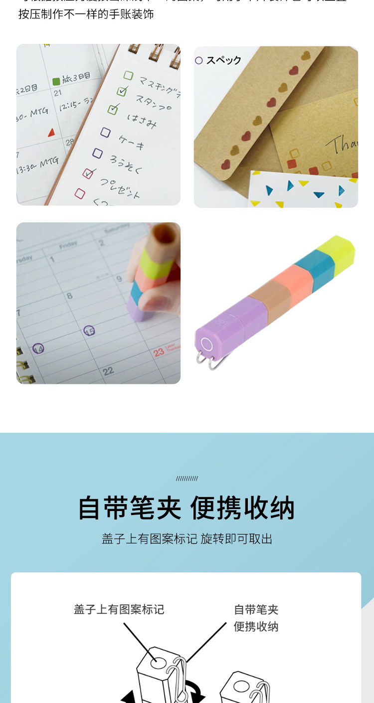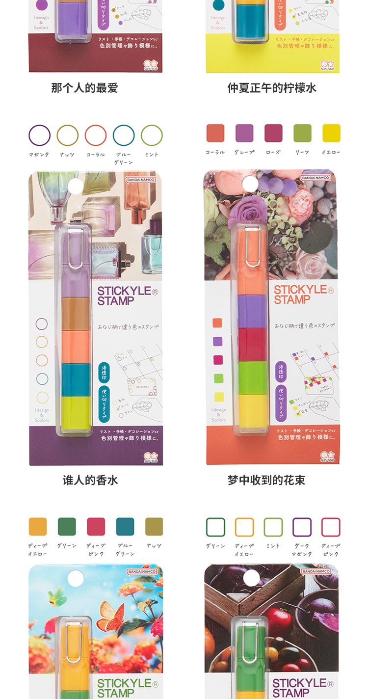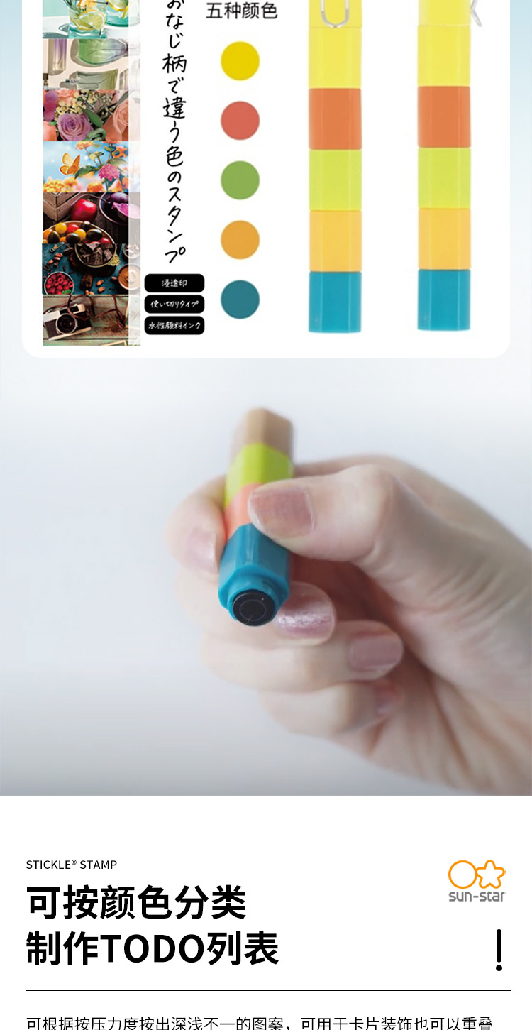 日本sunstar太阳星P笔式5色印章套组手帐制作创意配件清单索引