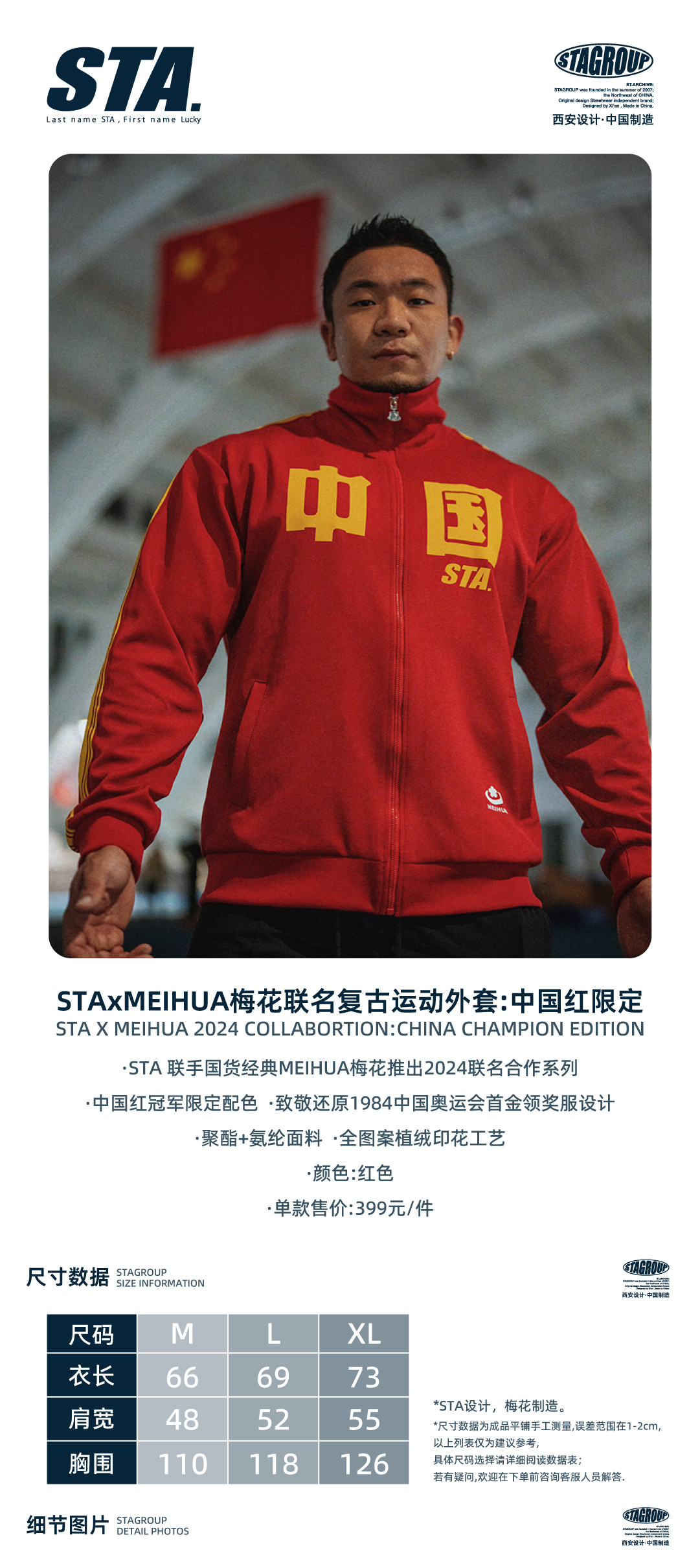 STAxMEIHUA梅花联名复古运动外套:中国红限定