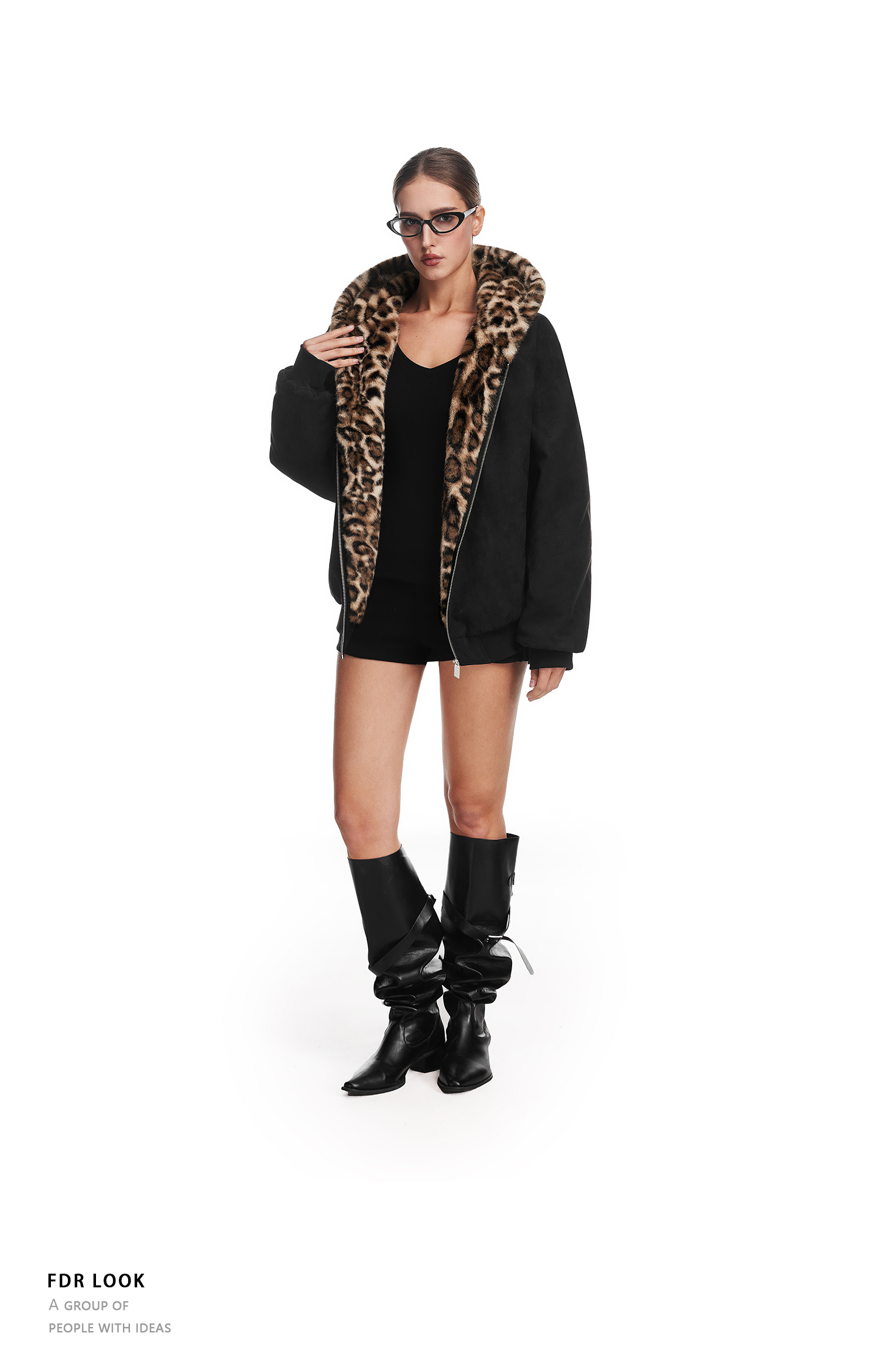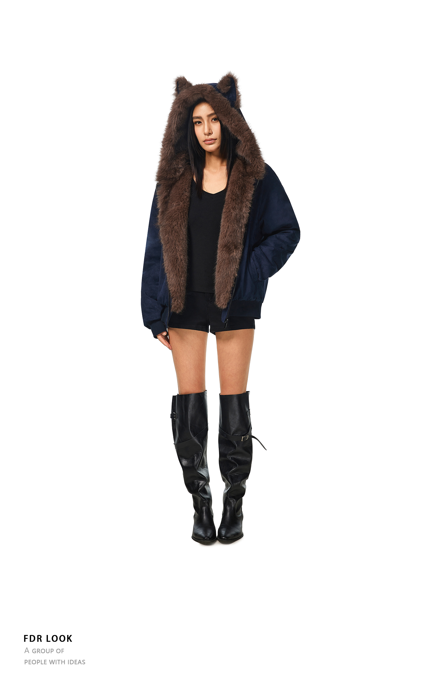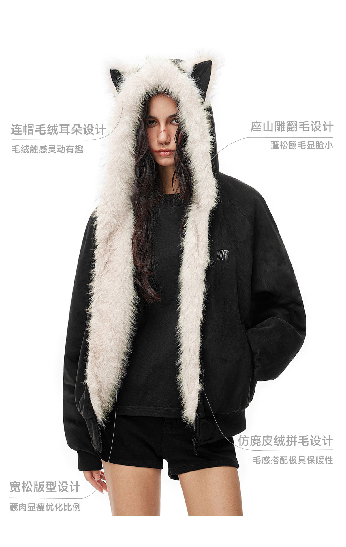 FDR官方店 麂皮毛领夹棉座山雕外套男女秋冬季加厚情侣装棉衣棉服