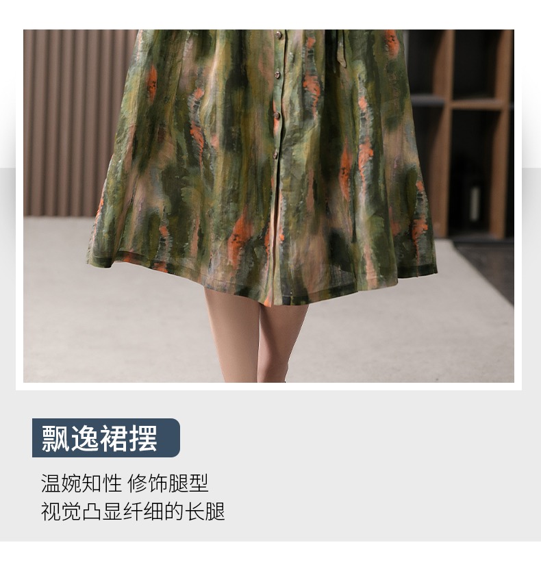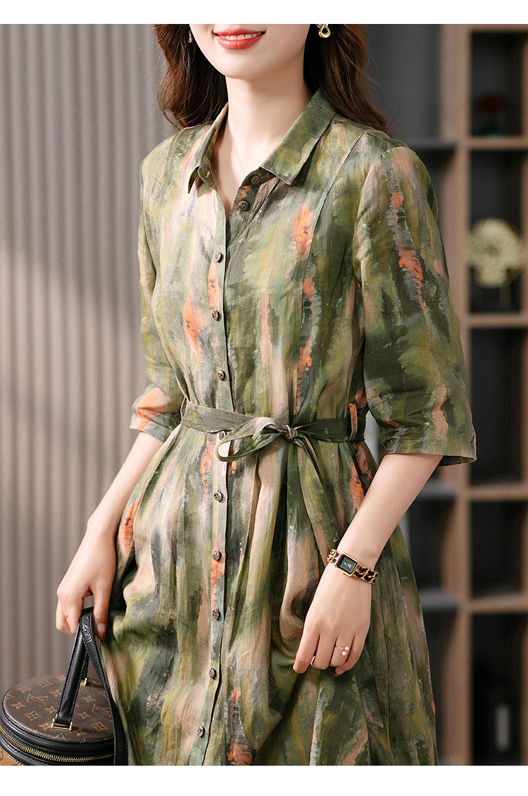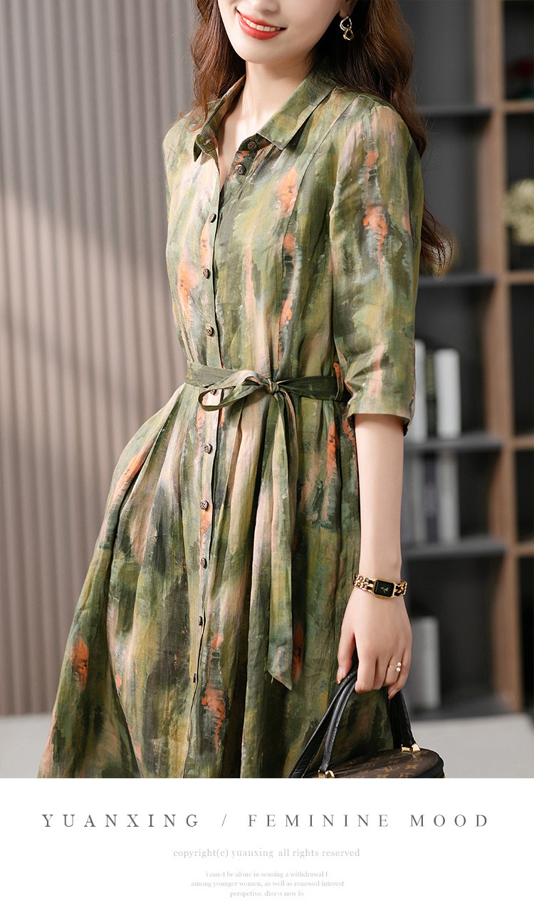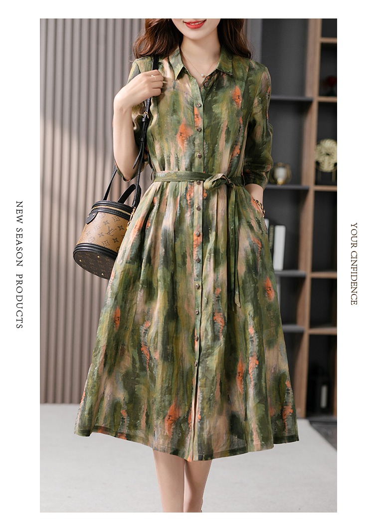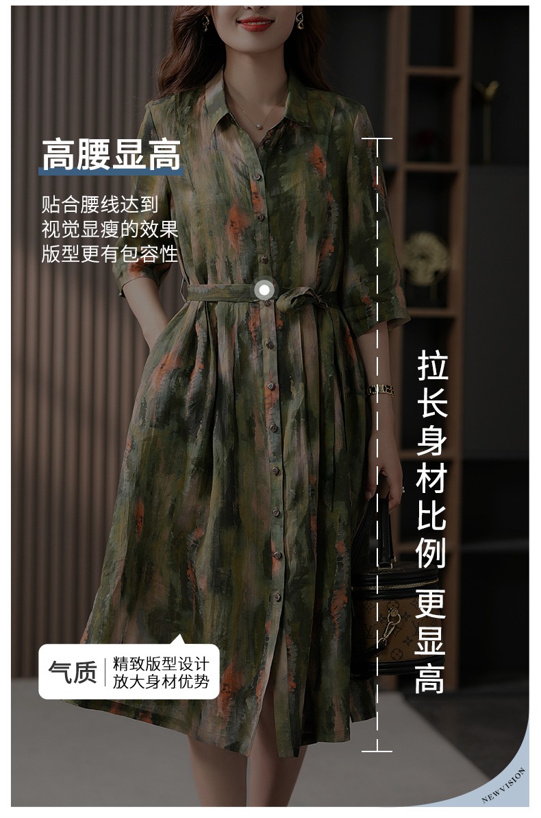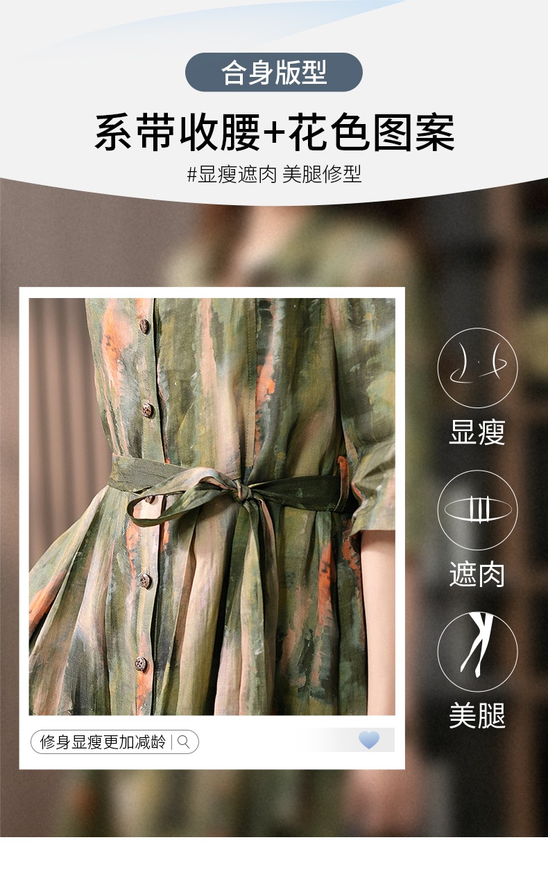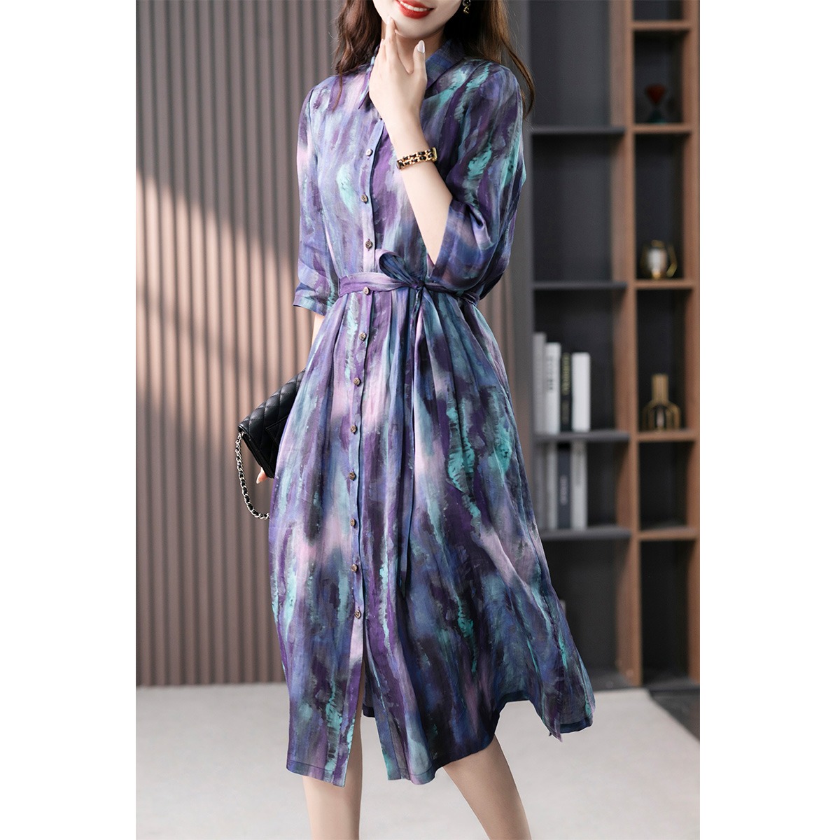 YX【现货7天】高端衬衫连衣裙女2024春夏季新款韩版洋气减龄系带收腰中长裙