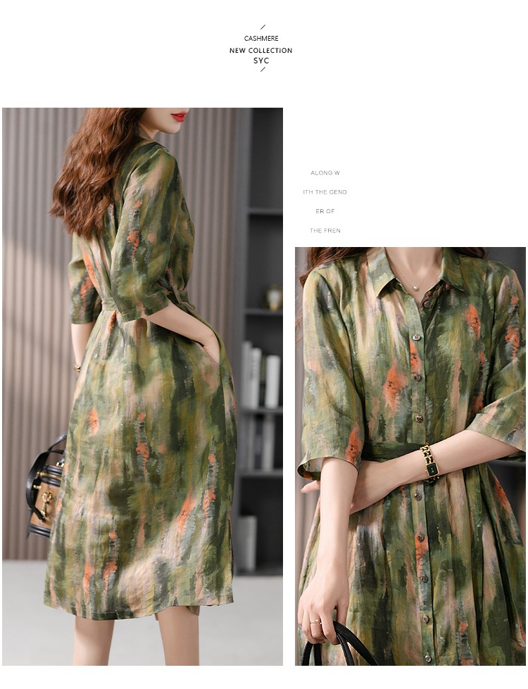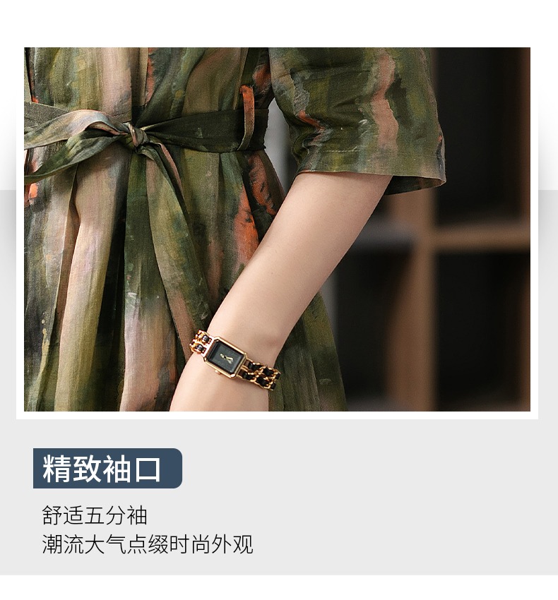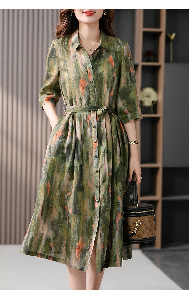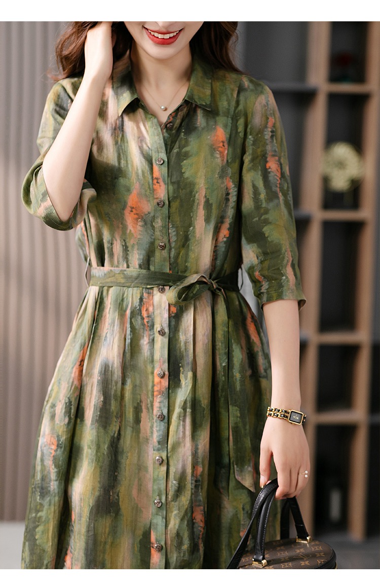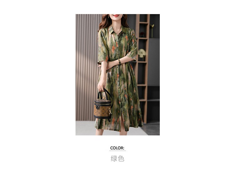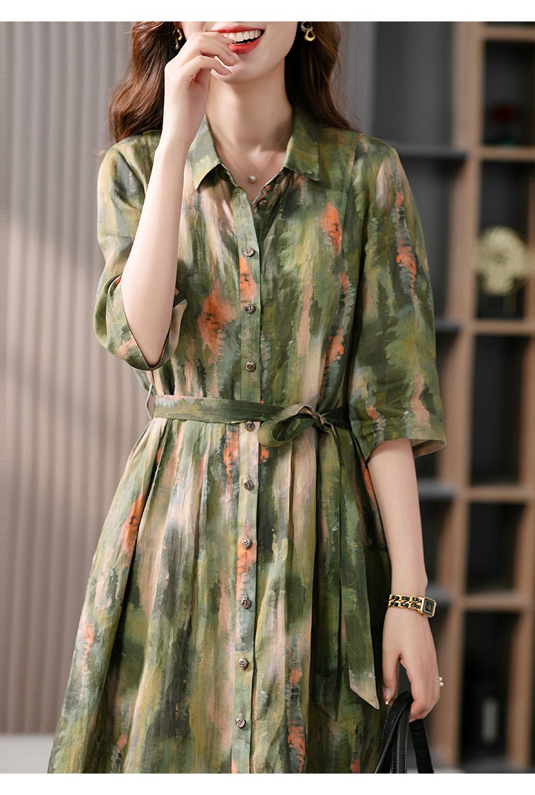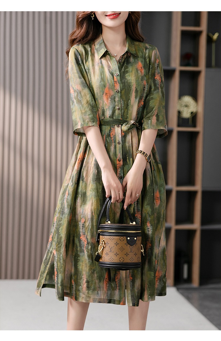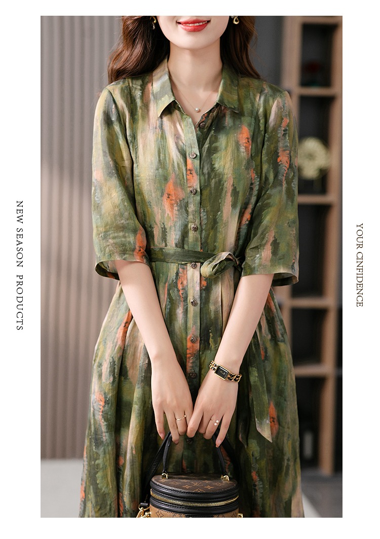 YX【现货7天】高端衬衫连衣裙女2024春夏季新款韩版洋气减龄系带收腰中长裙