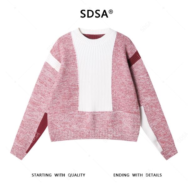 29173SDSA男士秋冬新款痞帅男装潮牌简约拼色圆领毛衣百搭时尚针织衫