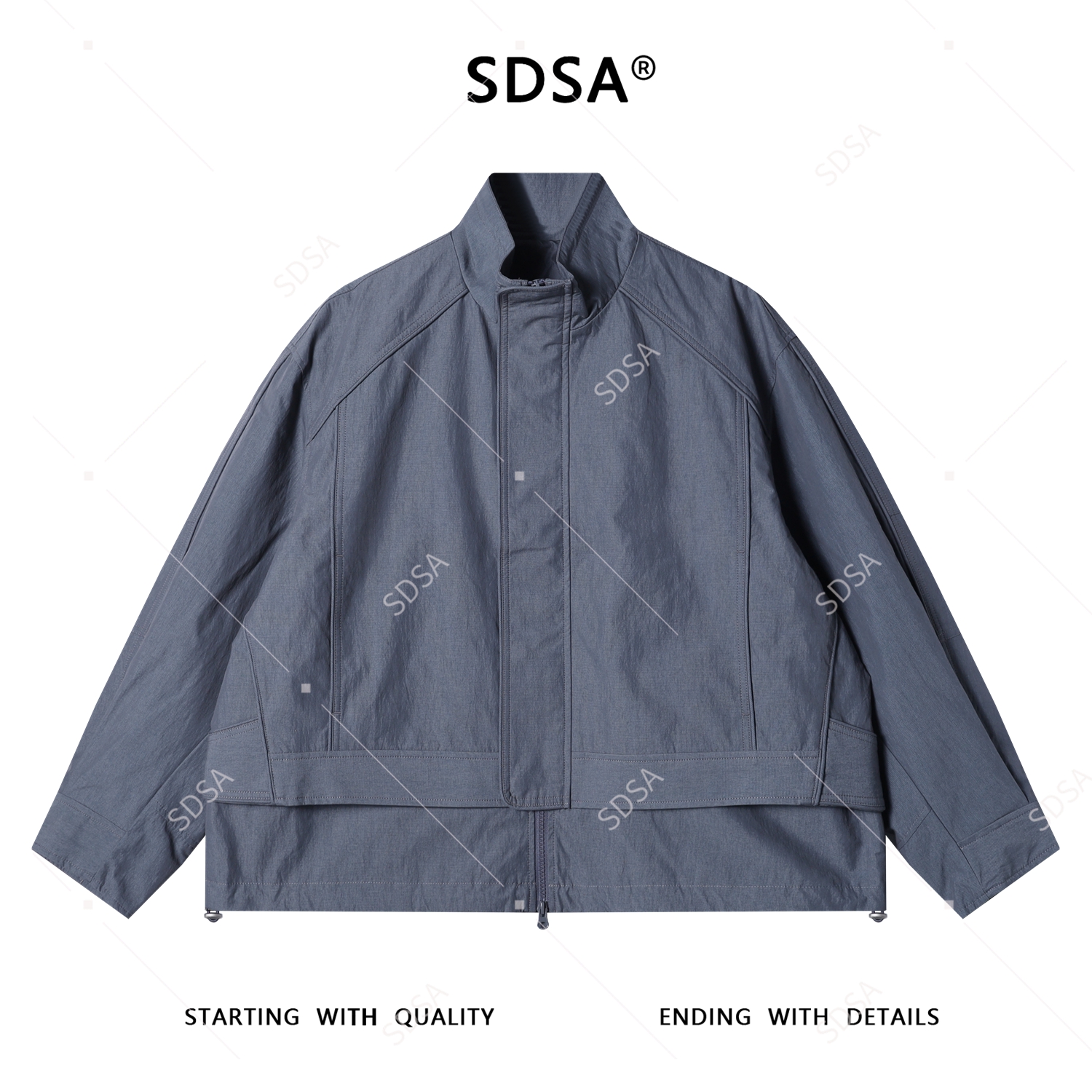 SDSA秋冬新款痞帅男装韩版纯色立领假两件夹克外套工装简约百搭
