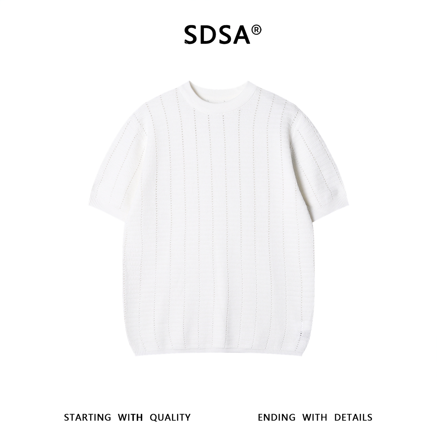 SDSA男装2026新款高贵轻奢老钱风肌理提花针织圆领短袖T恤百搭