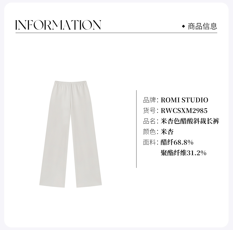 ROMI STUDIO“舒适夏日”醋酸凉感轻薄松紧腰直筒休闲裤 RWCSXM2985