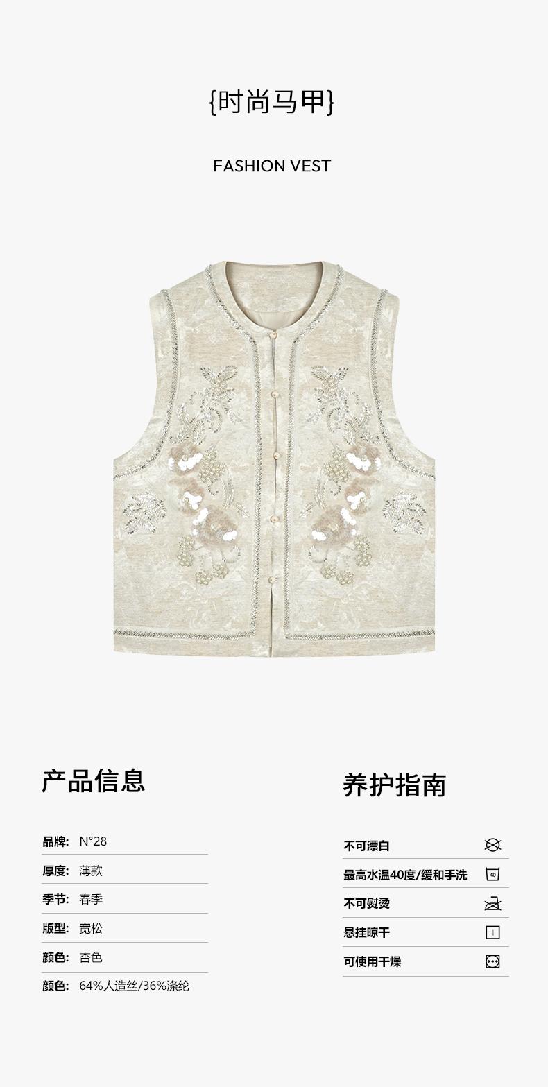 N°28 2025春季新款女款新中式休闲时尚短款外套轻奢国风复古马夹895131B109