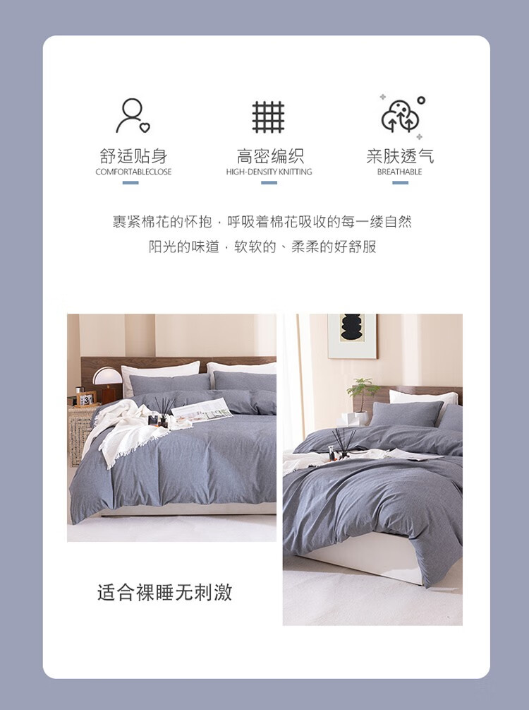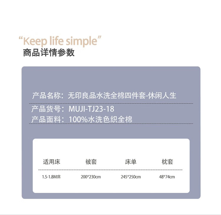 無印水洗全棉四件套 休闲人生 MUJI-TJ23-18 蓝色 200*230cm