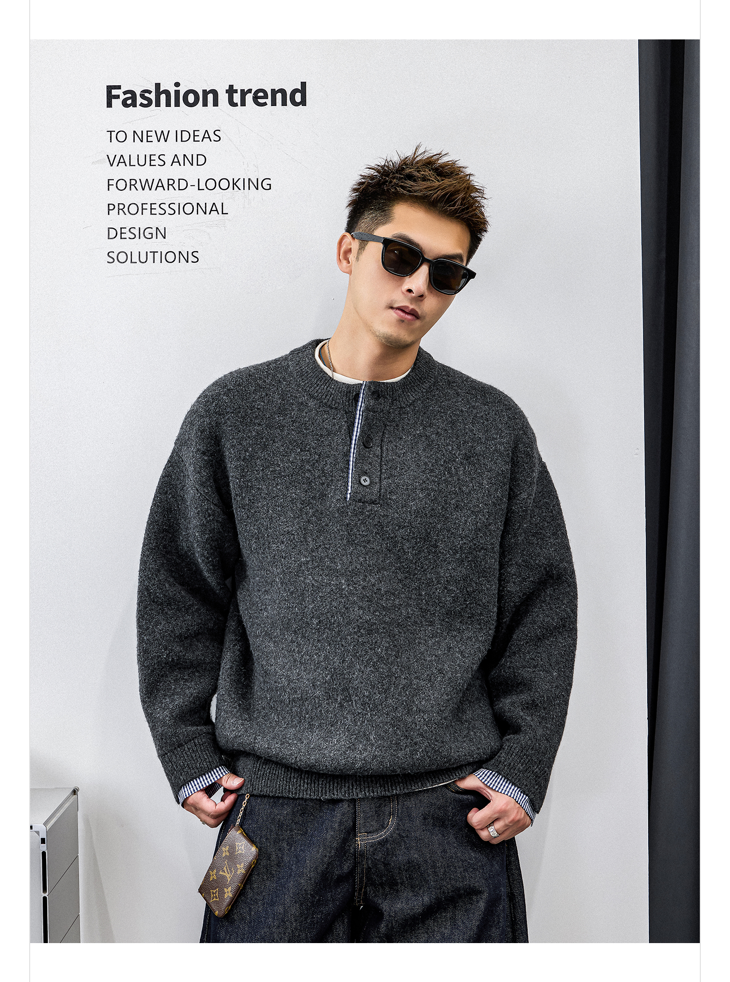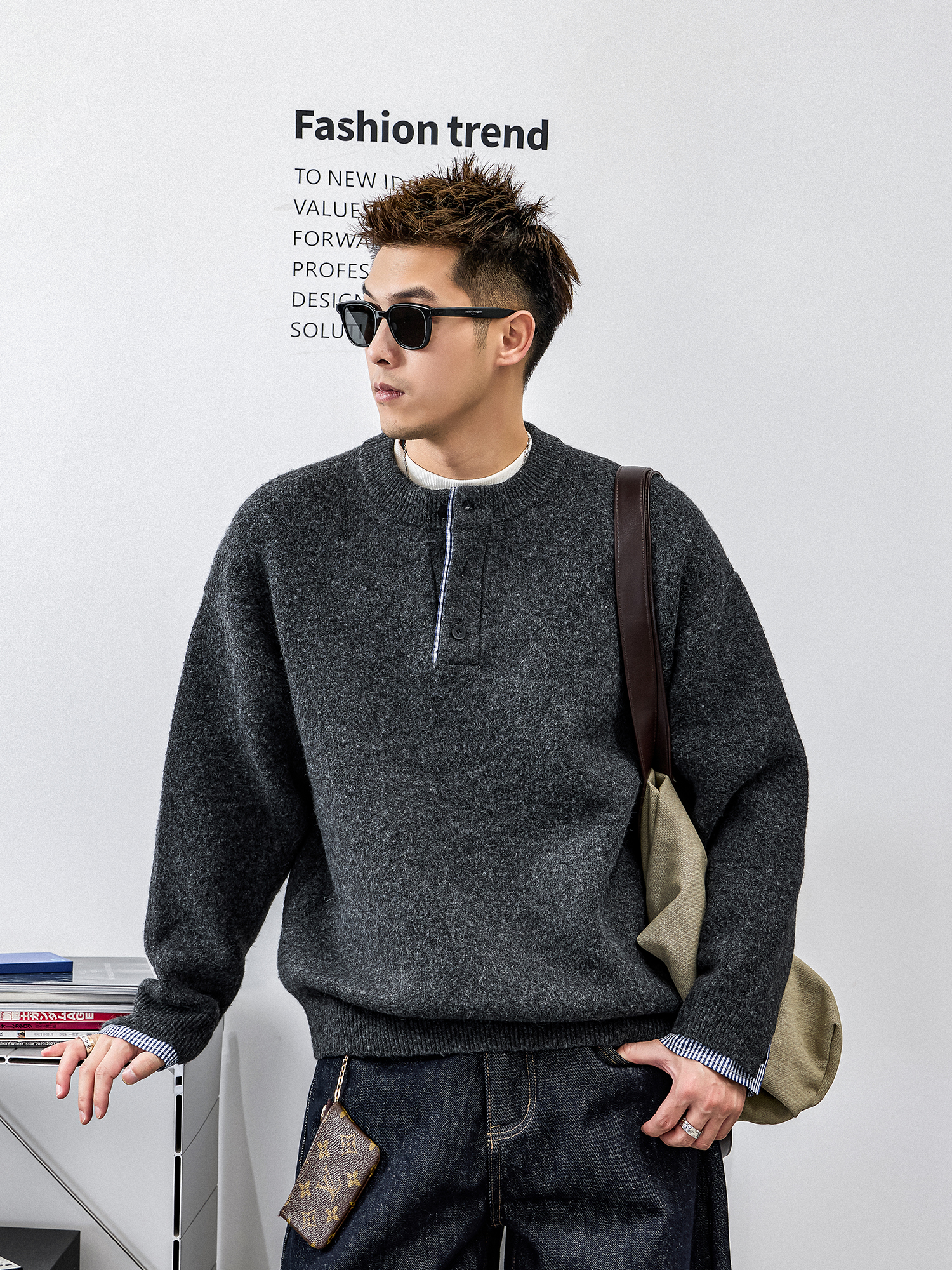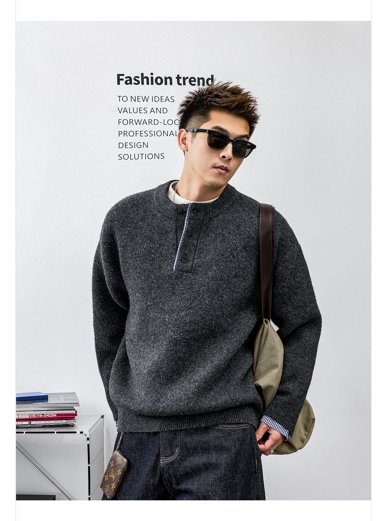 徐太浪【慵懒风 毛绒感】亨利领灰色毛衣男秋冬男装内搭针织上衣