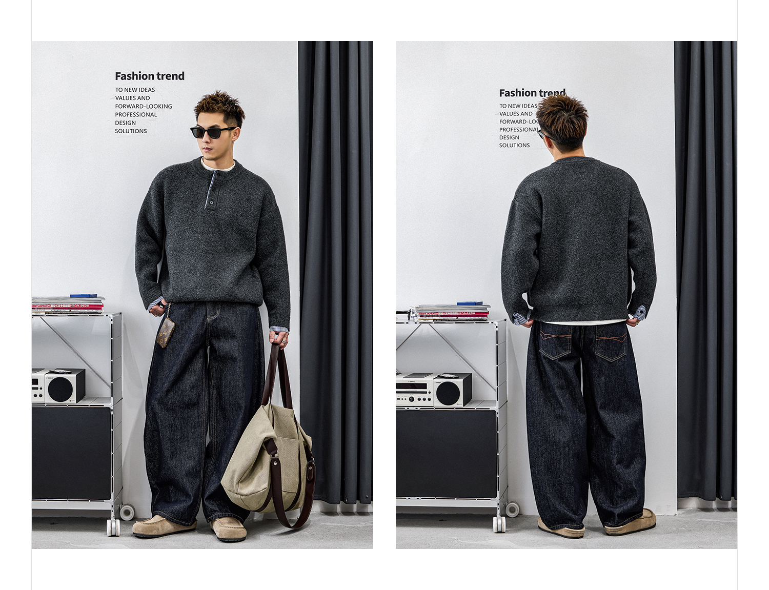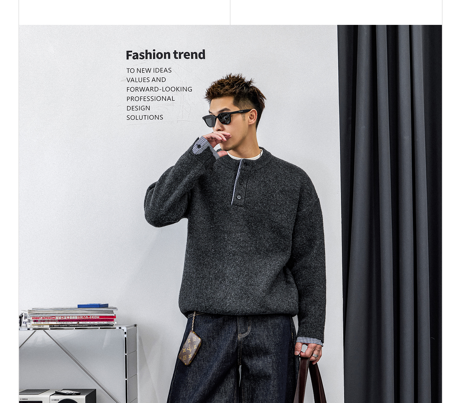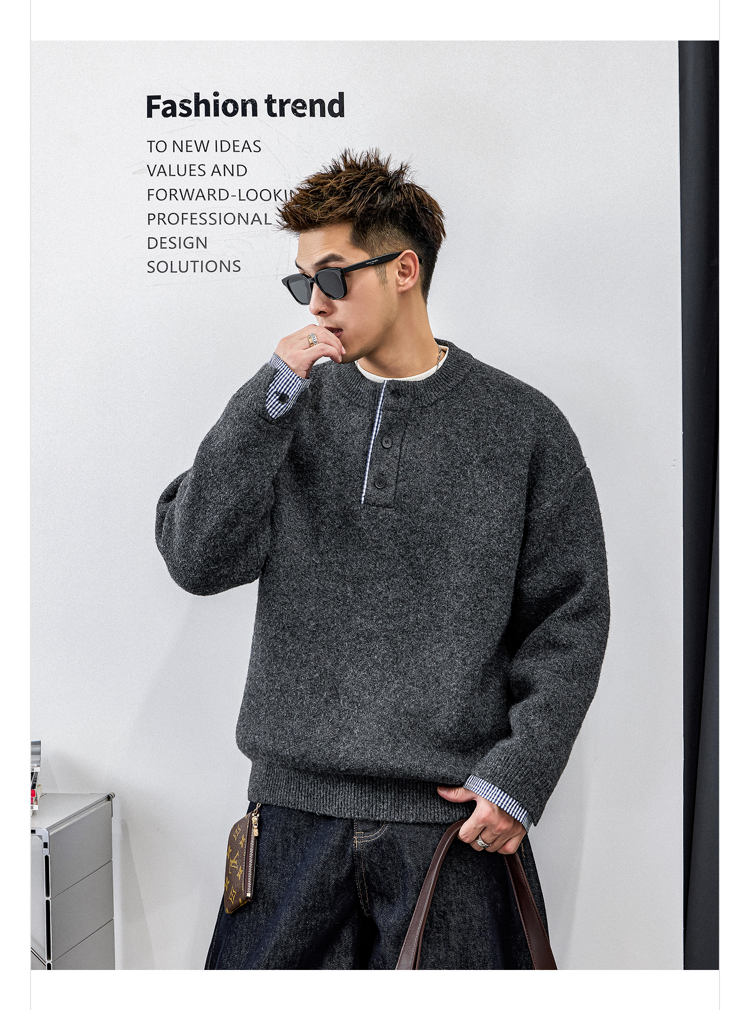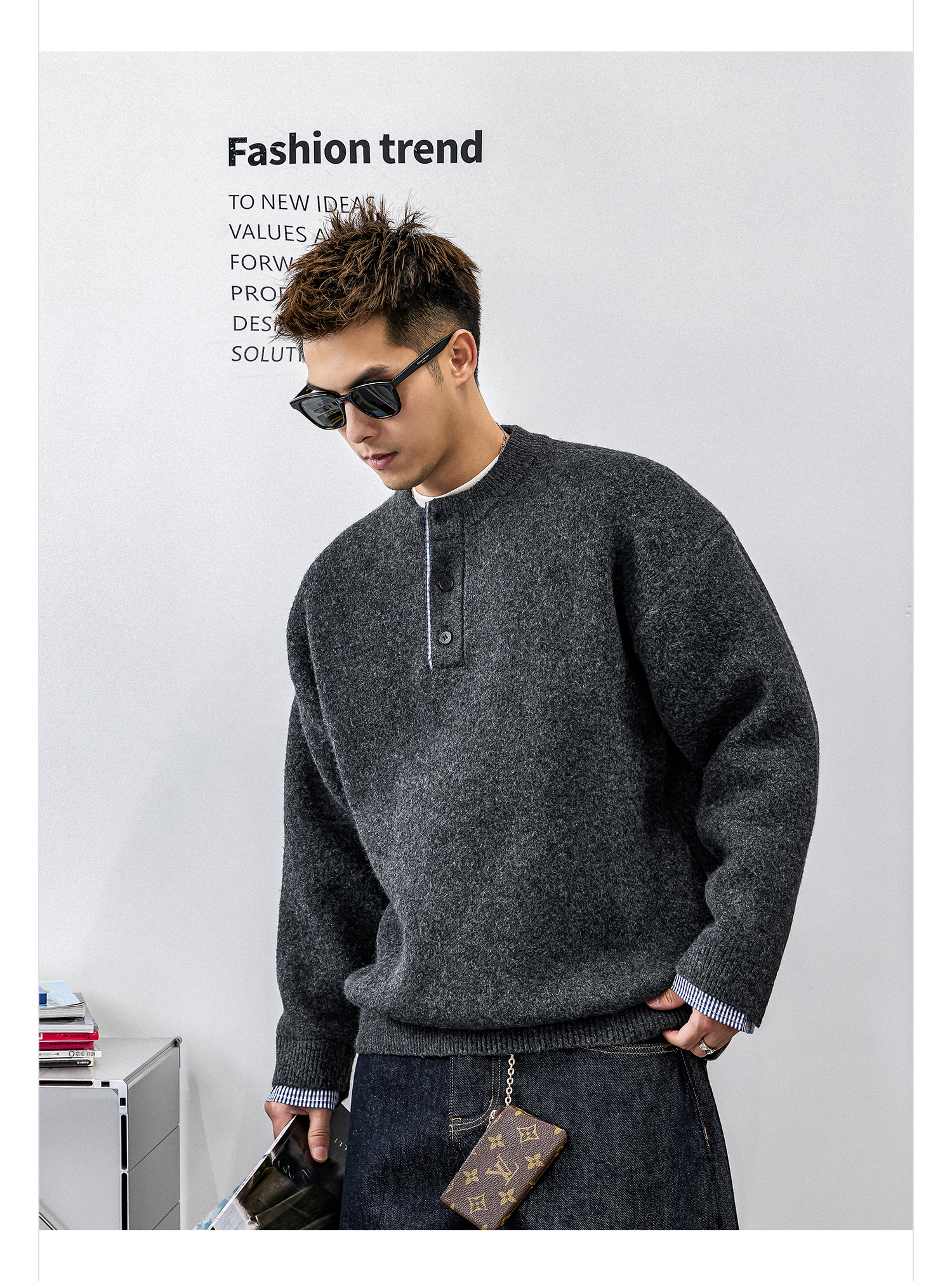 徐太浪【慵懒风 毛绒感】亨利领灰色毛衣男秋冬男装内搭针织上衣