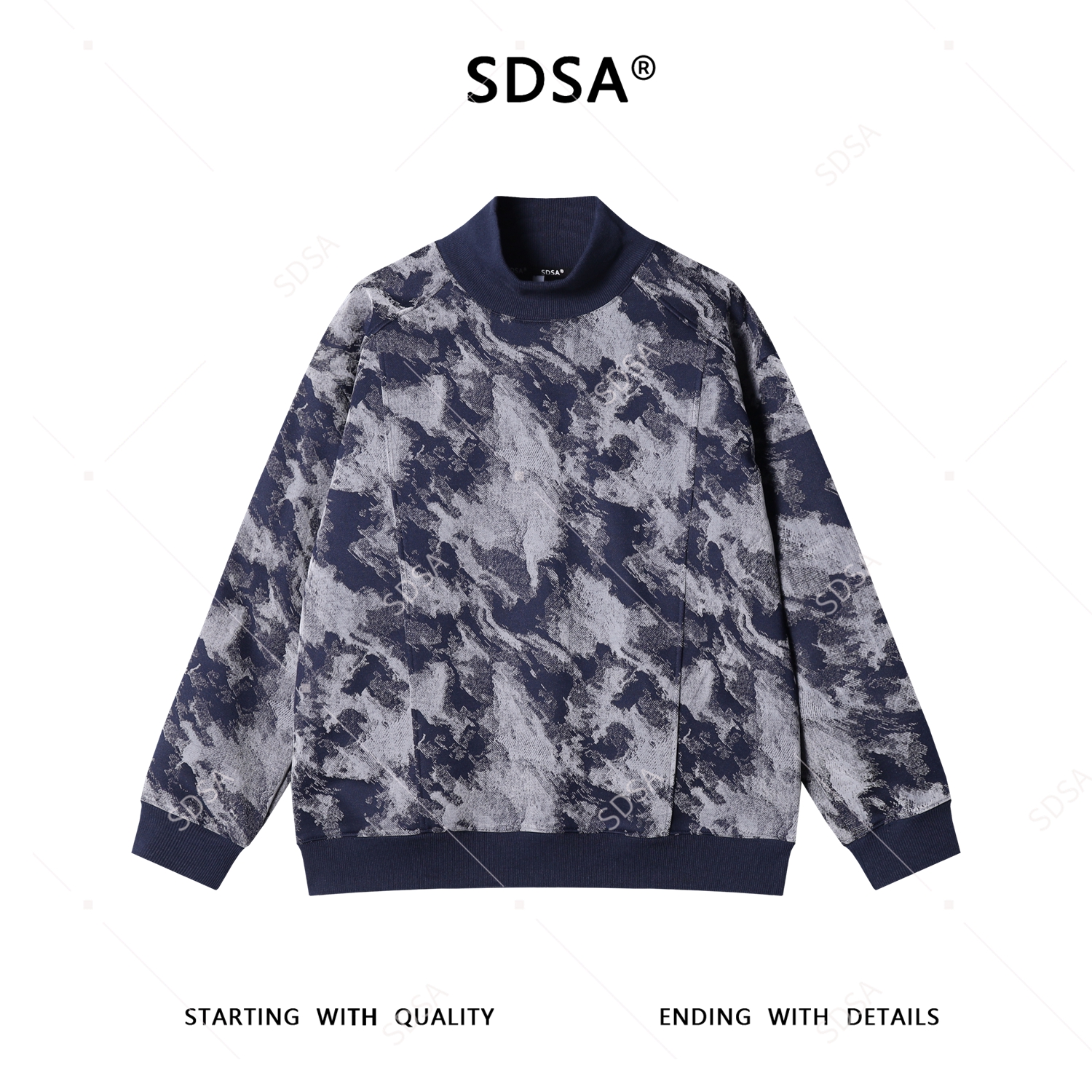 SDSA男士秋冬新款痞帅男装简约宽松植物花卉立领卫衣百搭时尚套头