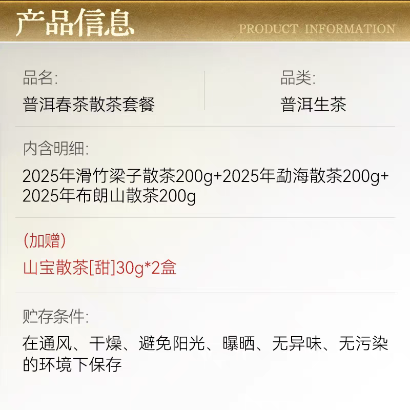 【春茶散茶套餐】陈升号 2025年滑竹梁子散茶+勐海散茶+布朗山散茶200g*3(生茶)