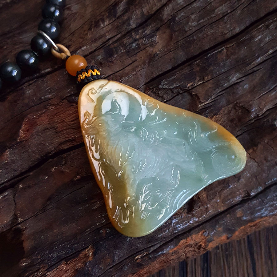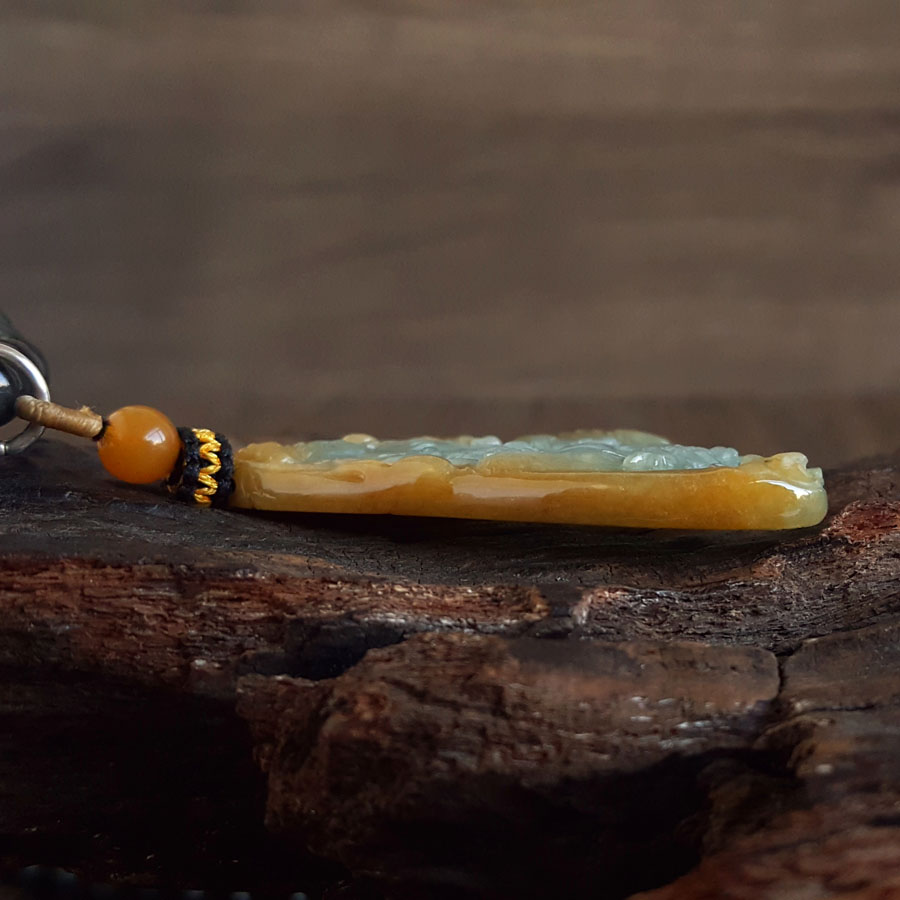 【天然正品】A货翡翠天然细腻糯种持莲观音(平安安乐)随形平安无事牌黄翡珠串项链54.1*49.7*6.3MM(皆取最大值)中性211125NJS12 特价