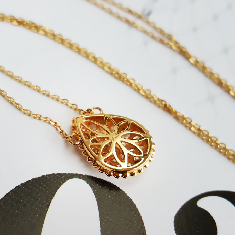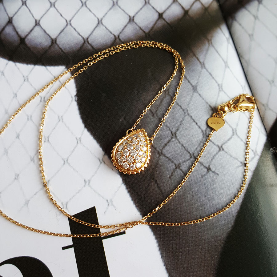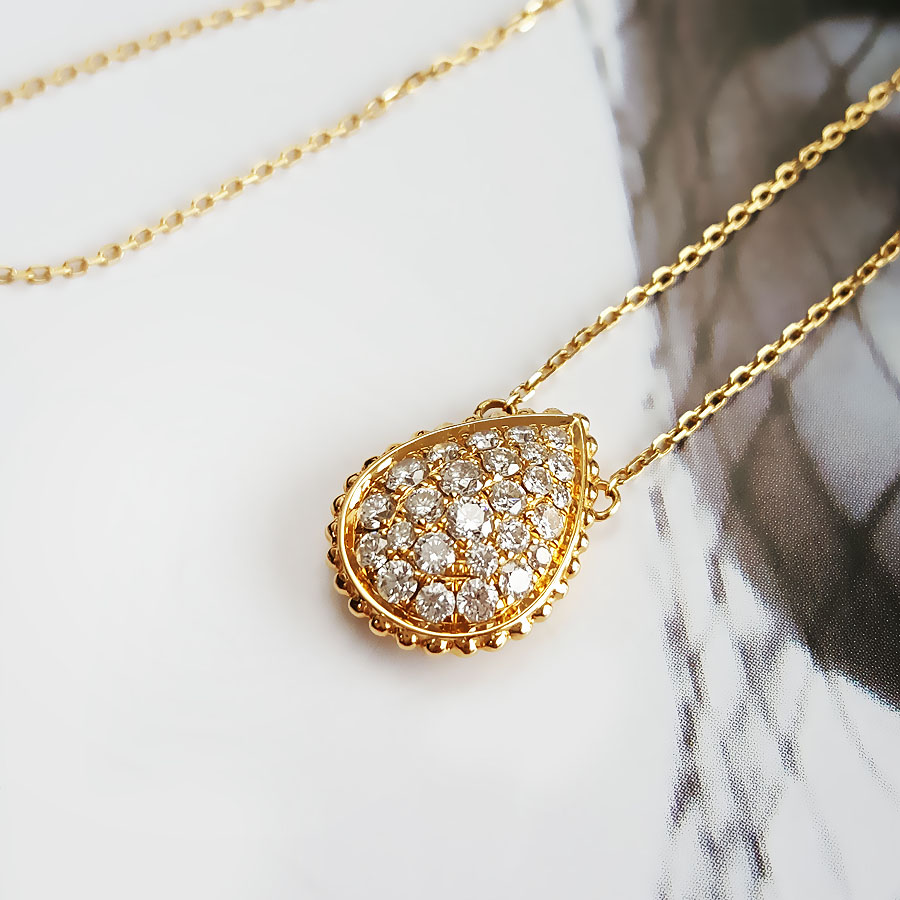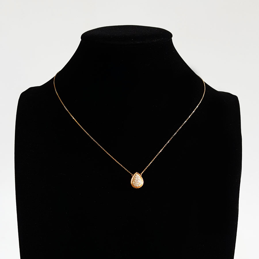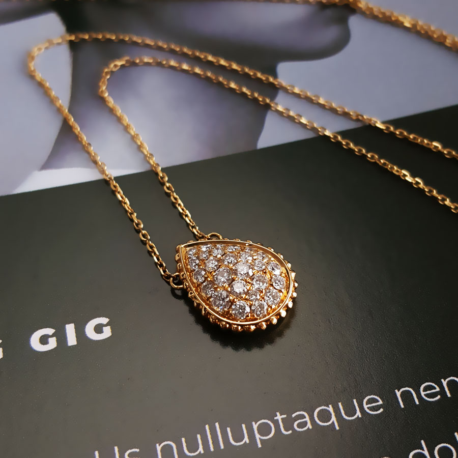 款式 | AU750黄金时尚简约群镶款水滴造型0.486克拉钻石吊坠项链 |