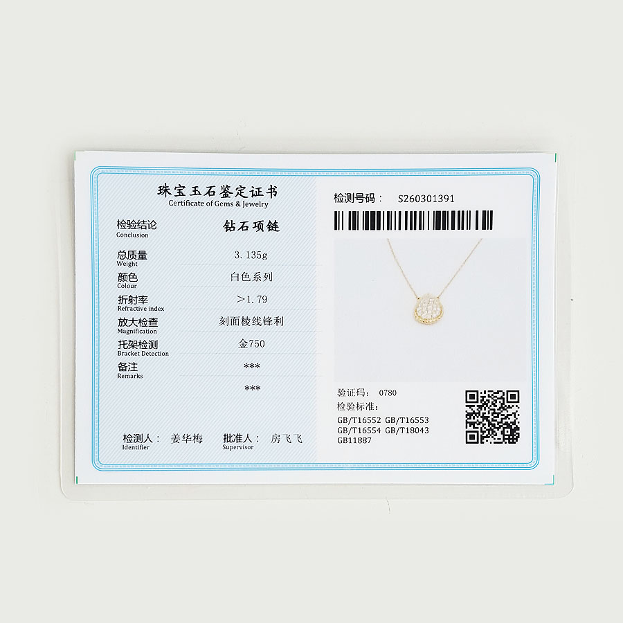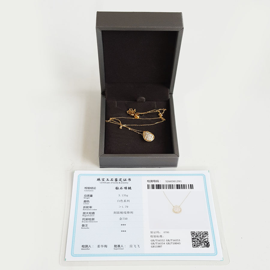 【天然正品】AU750黄金时尚简约群镶款水滴造型0.486克拉钻石吊坠项链 链长:44CM(长度可调节)250326NJS26