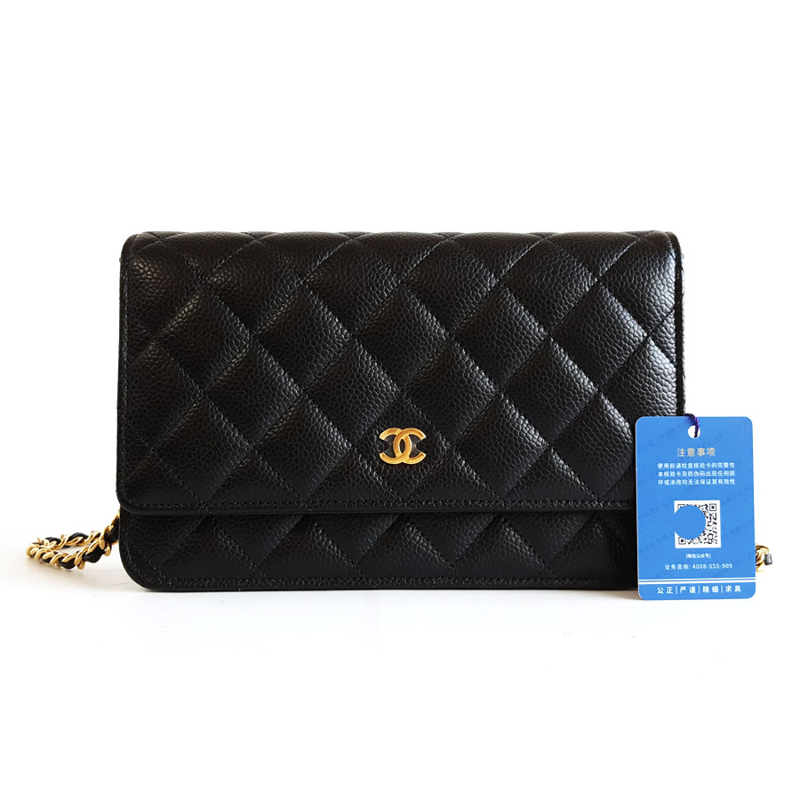 【98新闲置】CHANEL香奈儿AP0250 Y01864 C3906黑金荔枝纹WOC发财包链条包单肩包女士140226JJ01
