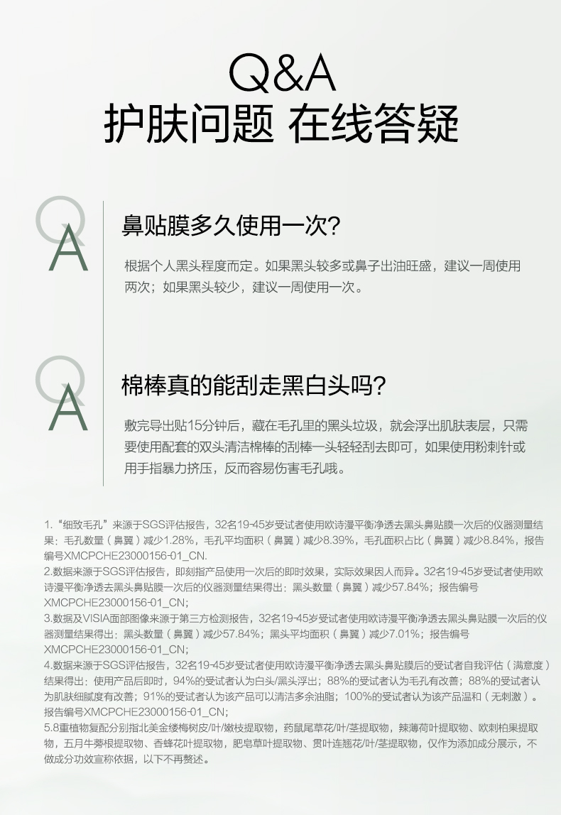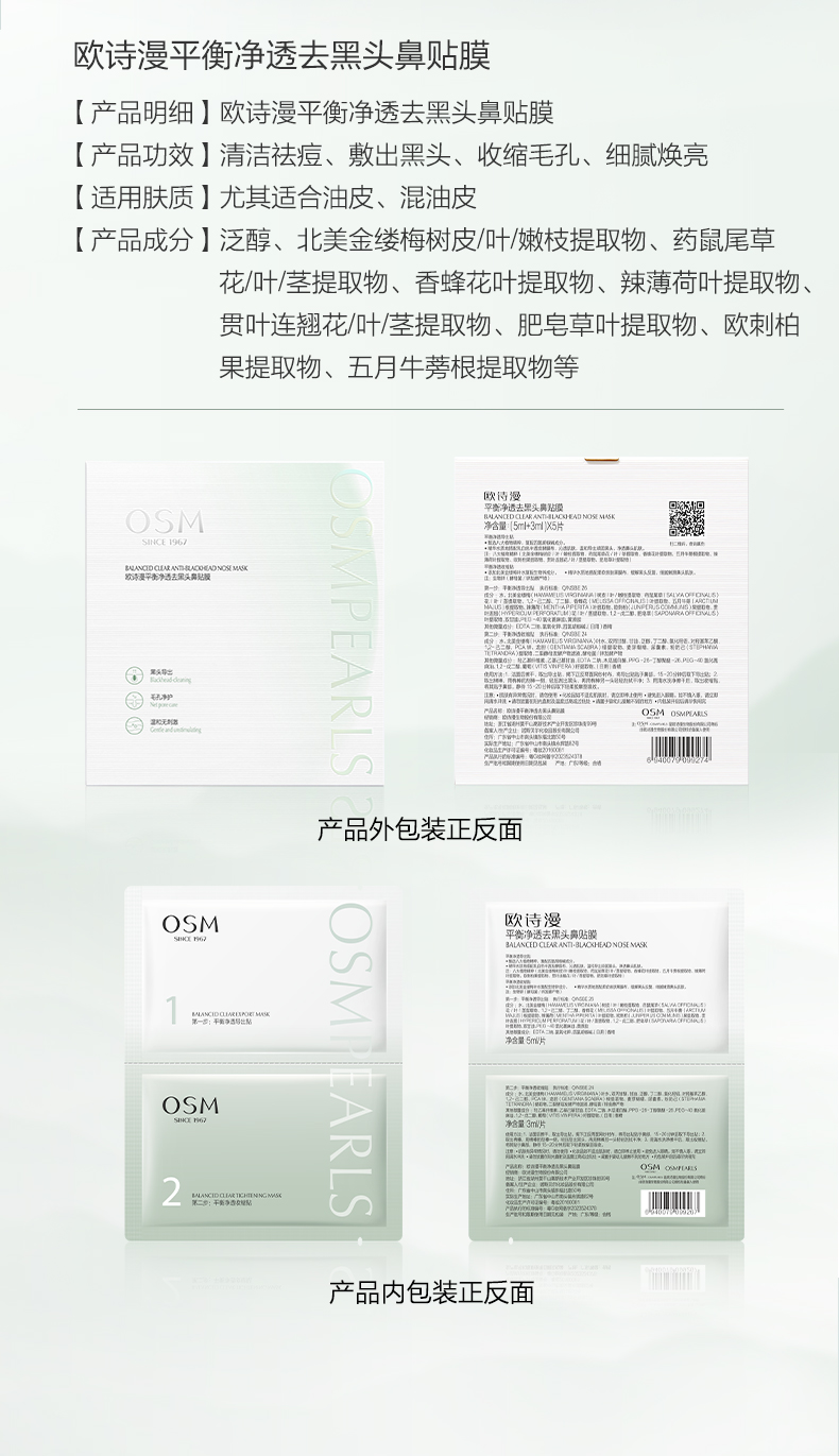 【高效去黑头】欧诗漫平衡净透去黑头鼻贴膜5片*2盒