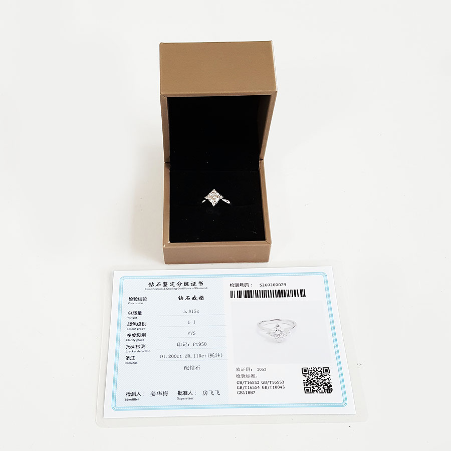 【天然正品】PT950铂金经典简约四爪款1.20克拉钻石戒指14号(戒圈可改)090226NJS26
