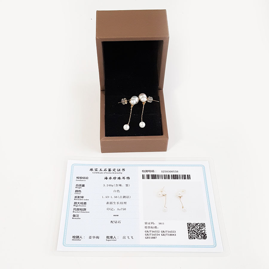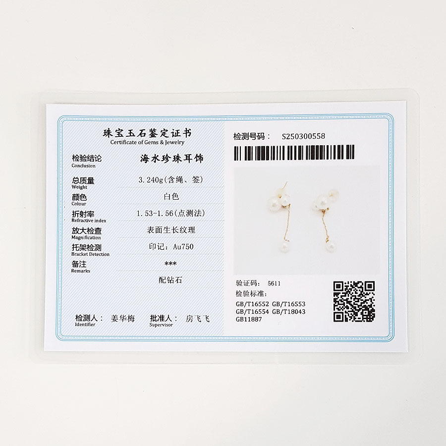 名称 | AU750黄金镶钻镶天然近完美约5.1-7.5MM Akoya海水珍珠流苏耳坠 |