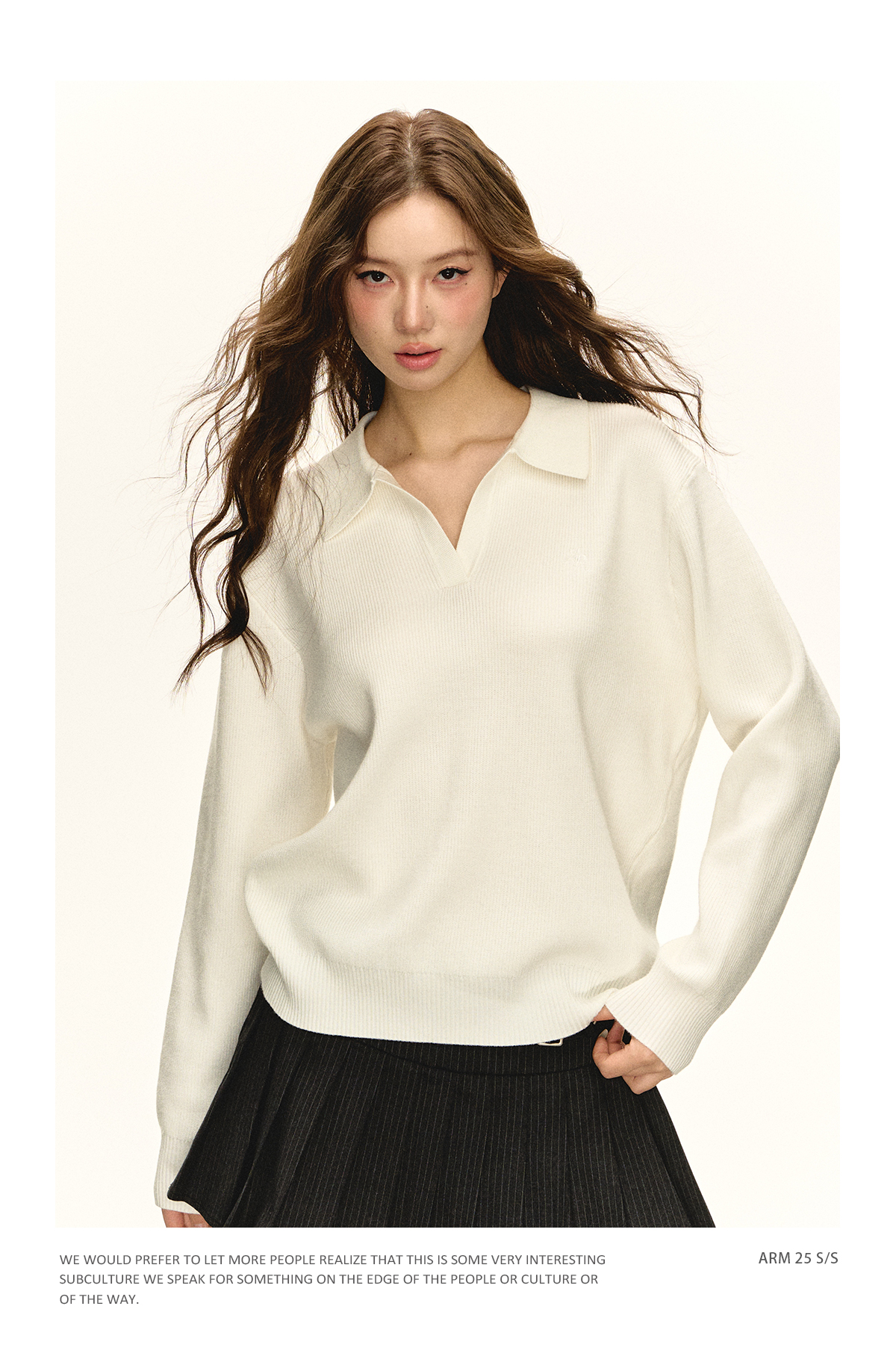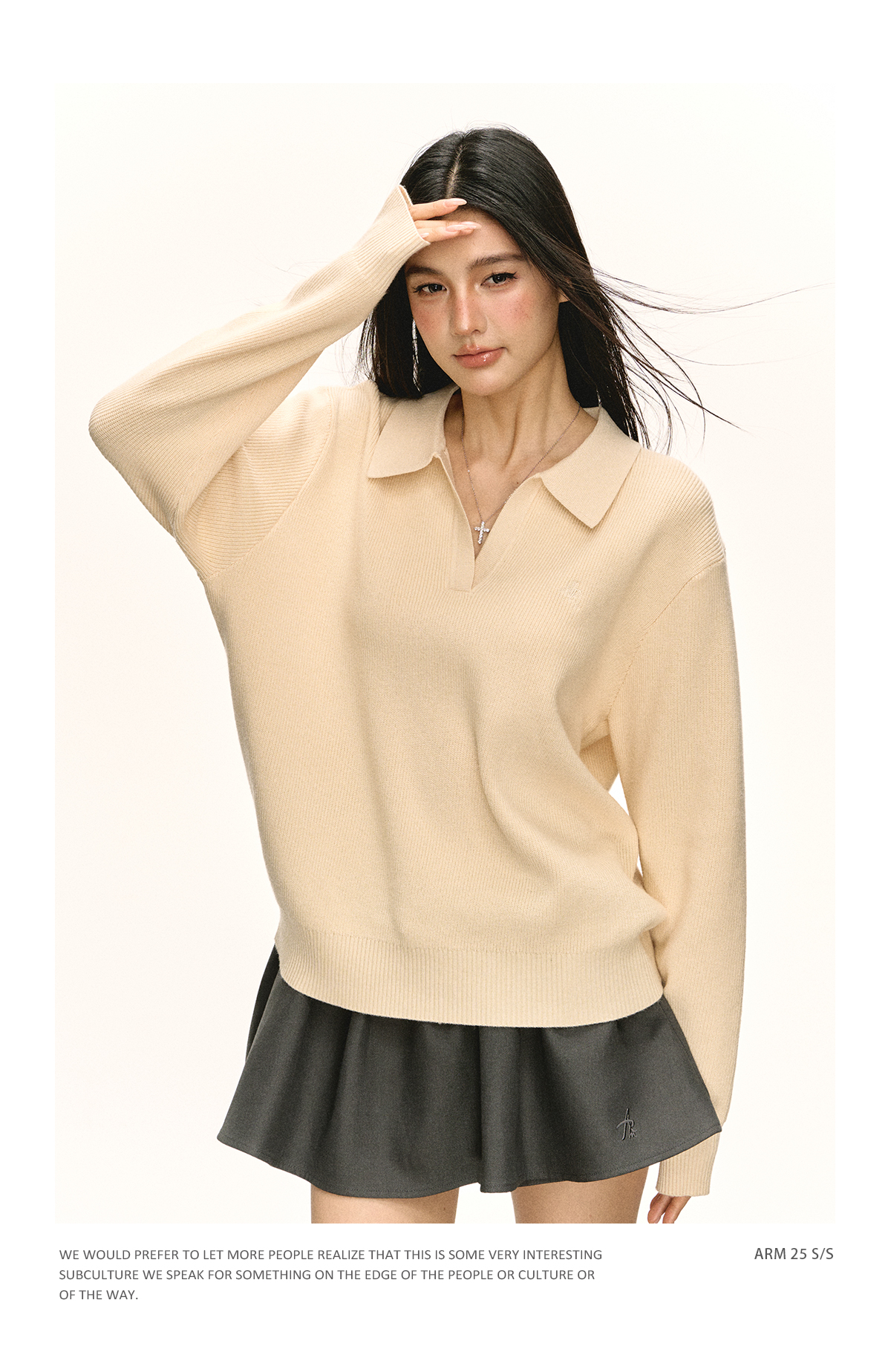 Ariseism 美式复古设计感宽松翻领毛衣外套女秋季新款上衣
