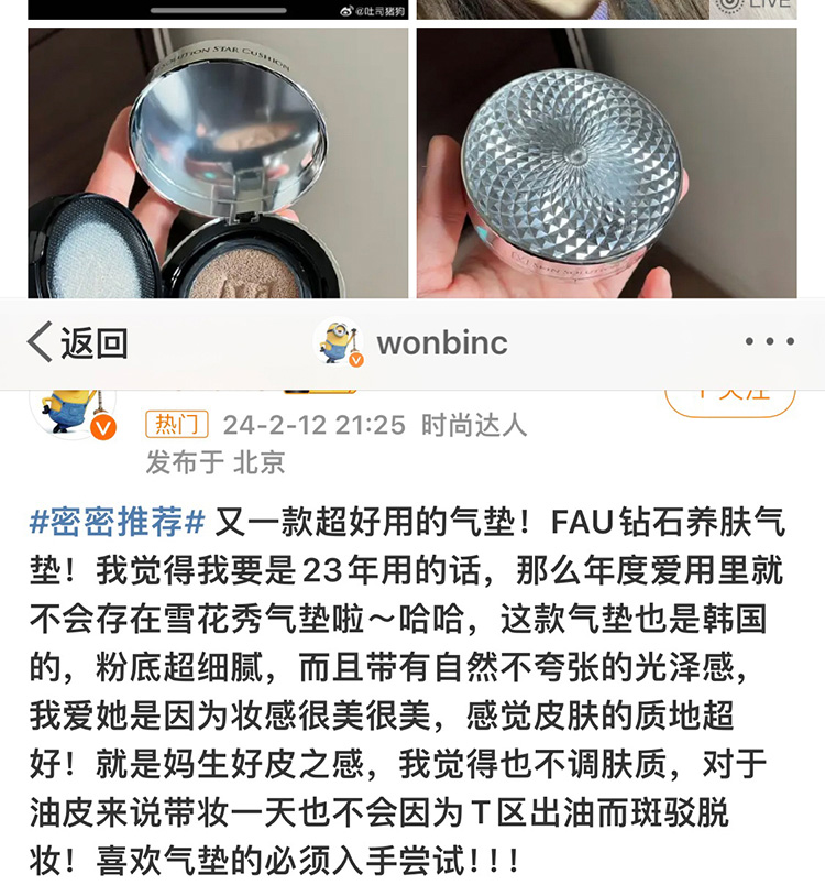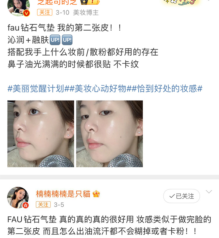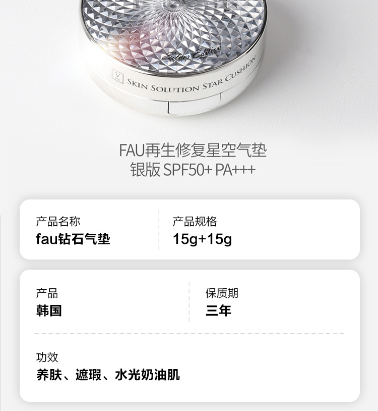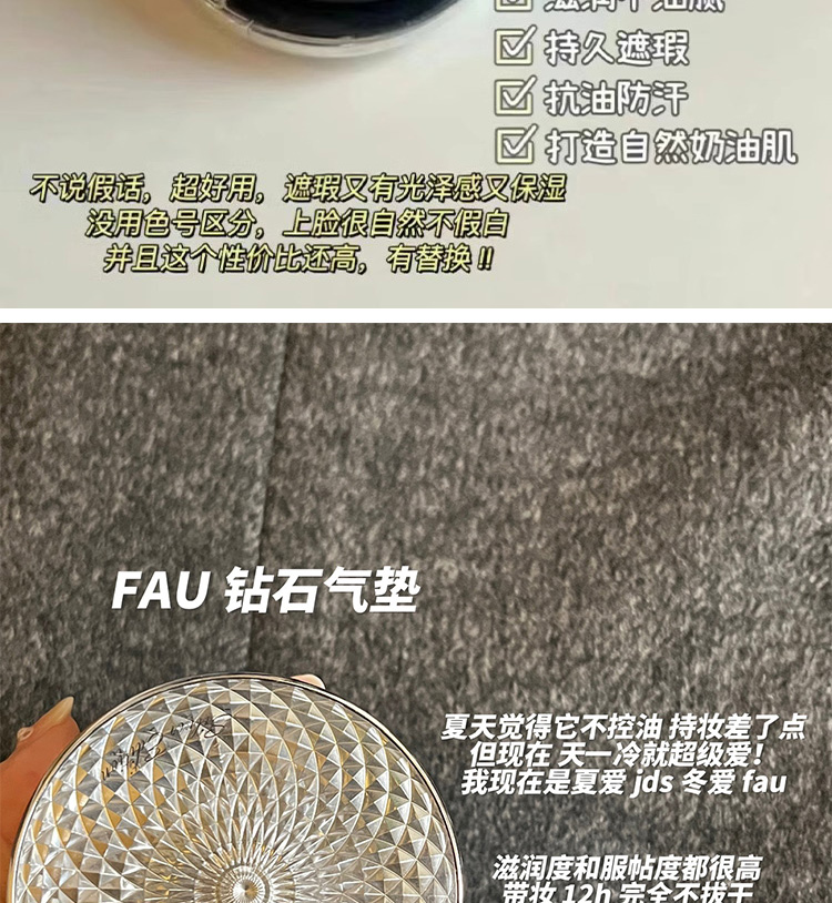 持久奶油肌!韩国Fau钻石气垫粉底液滋润遮瑕干皮敏感肌可用