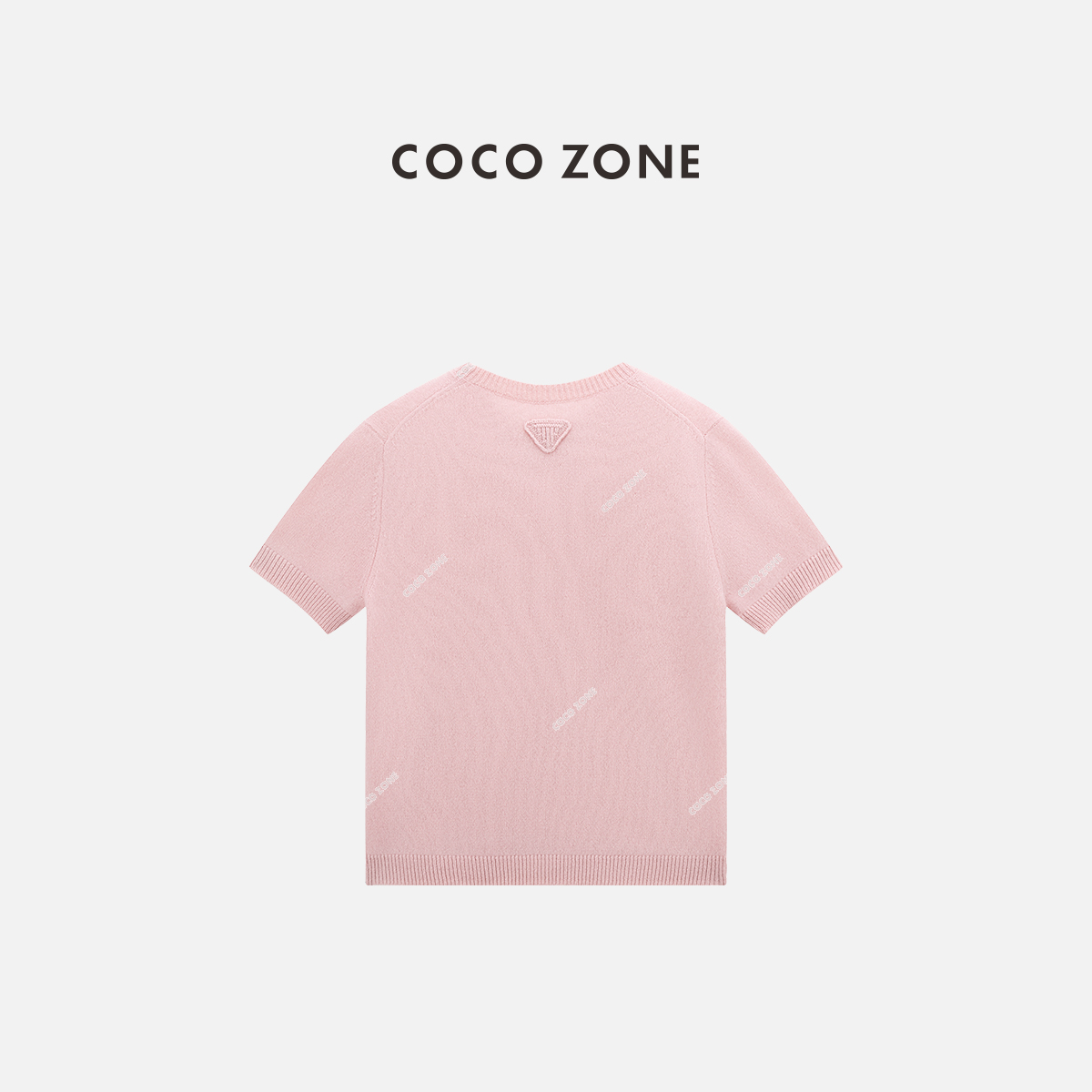 COCO ZONE 100绵羊毛时尚圆领针织衫短袖上衣CC1C1628