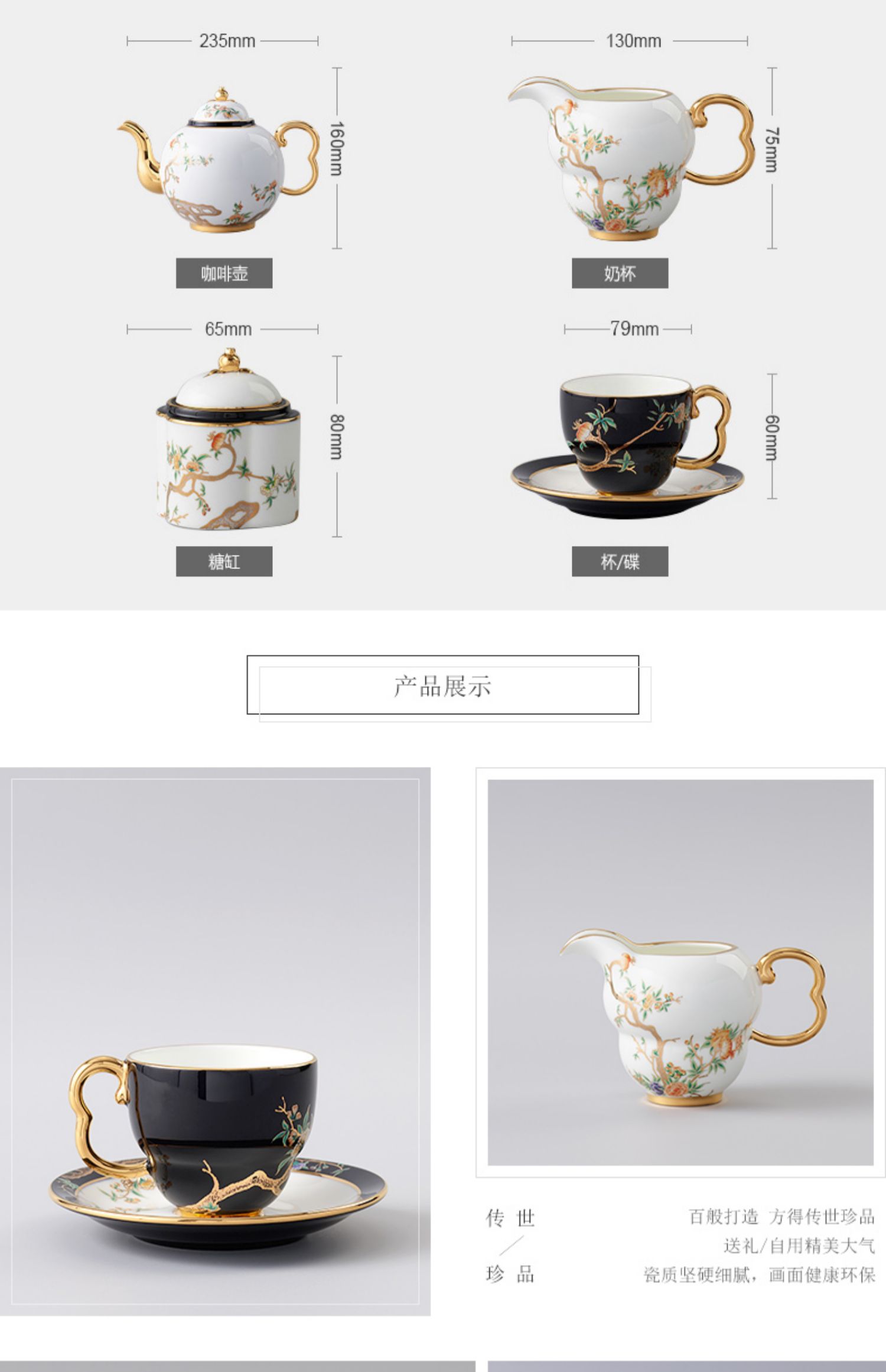 永丰源 夫人瓷石榴家园 17头咖啡具 轻奢下午茶杯碟陶瓷茶具套装