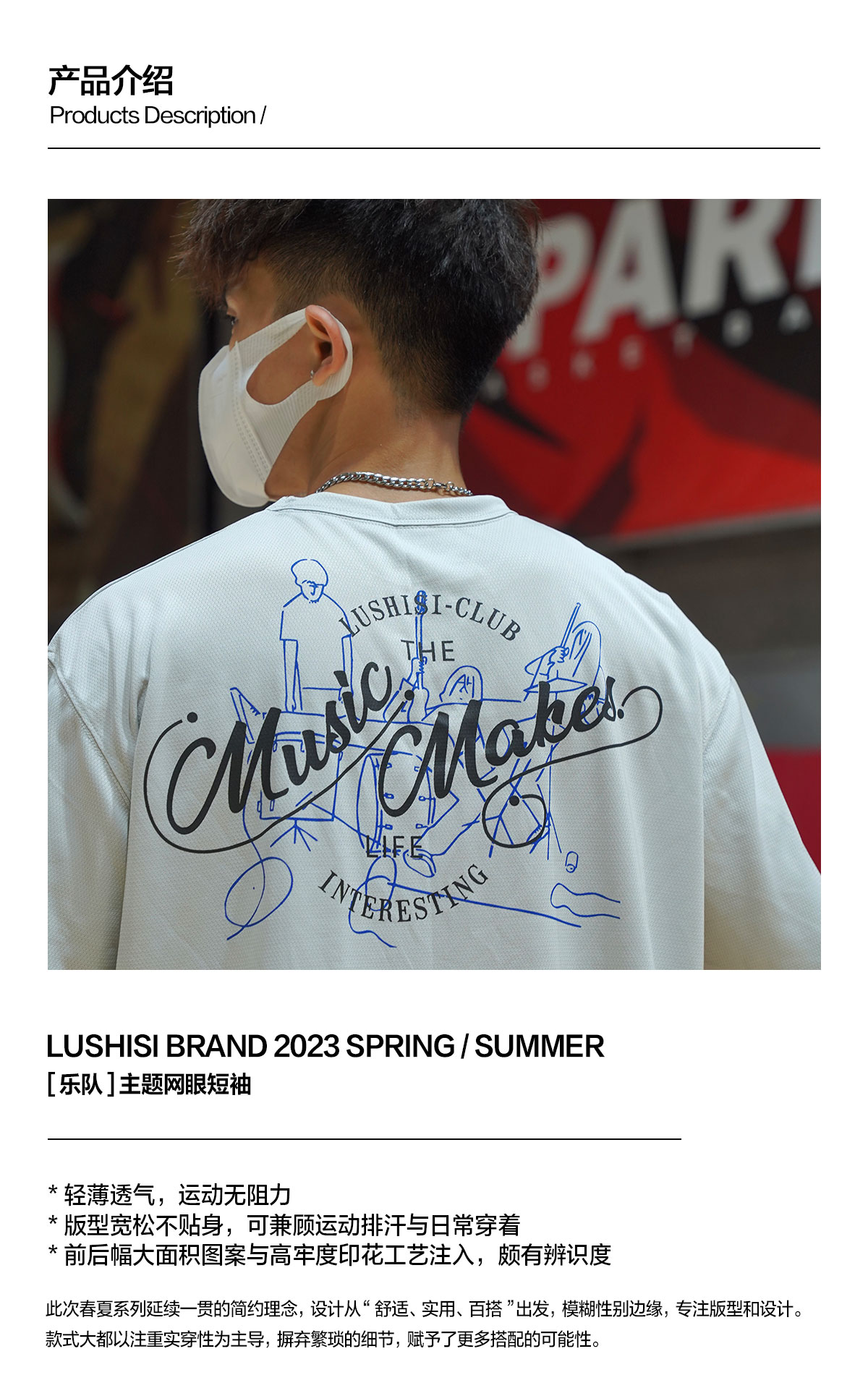 LUSHISI夏季新品速干网眼运动轻薄透气短袖T恤宽松短袖男[乐队]