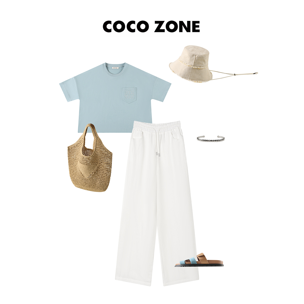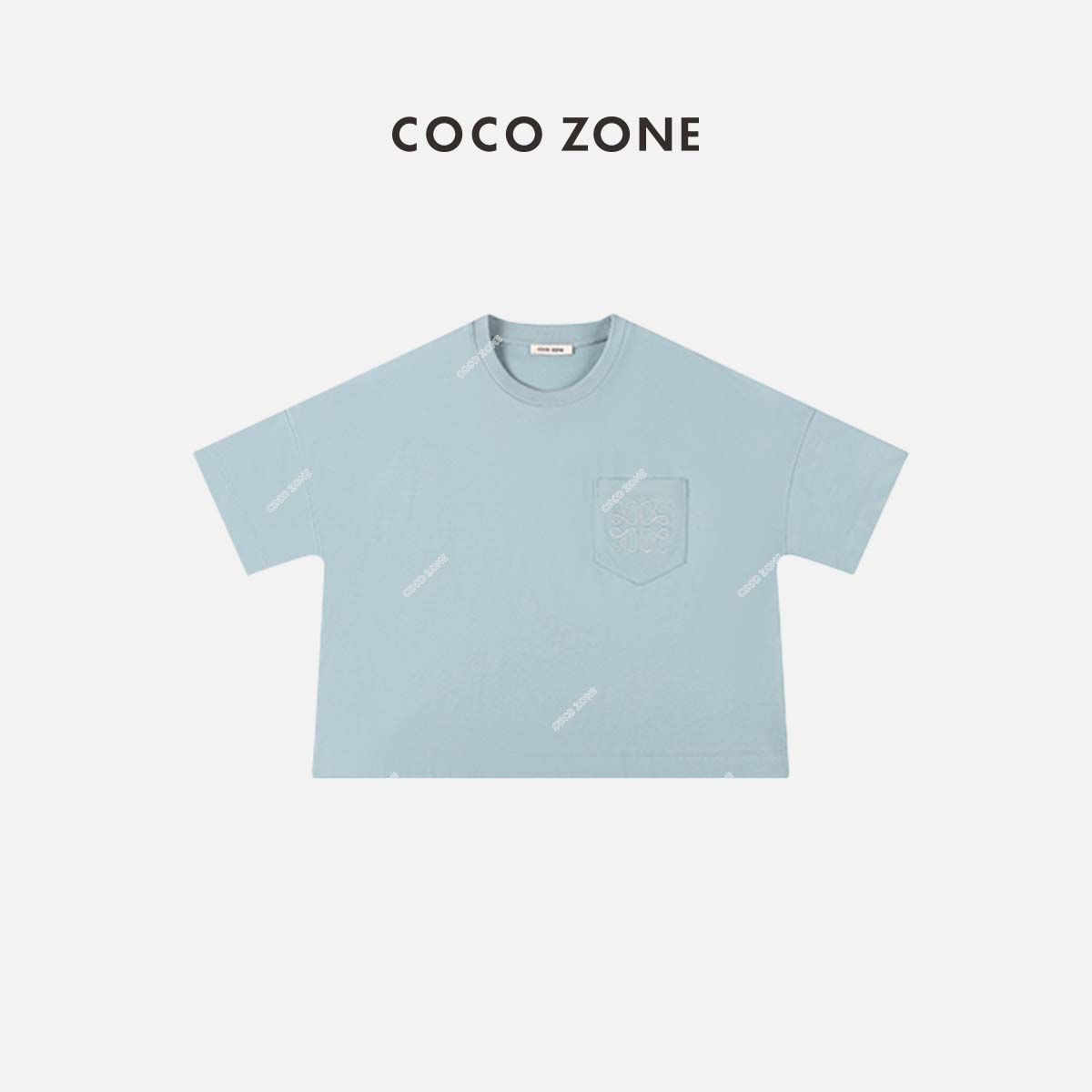 COCO ZONE 通勤风圆领短款前口袋绣花T上衣 23C18856