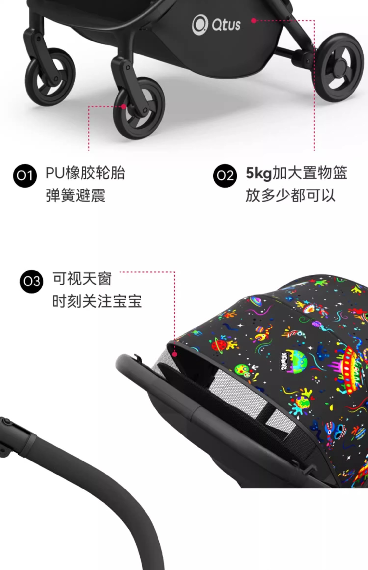昆塔斯Q9婴儿车轻便可坐躺登机一键收车高景观遛娃