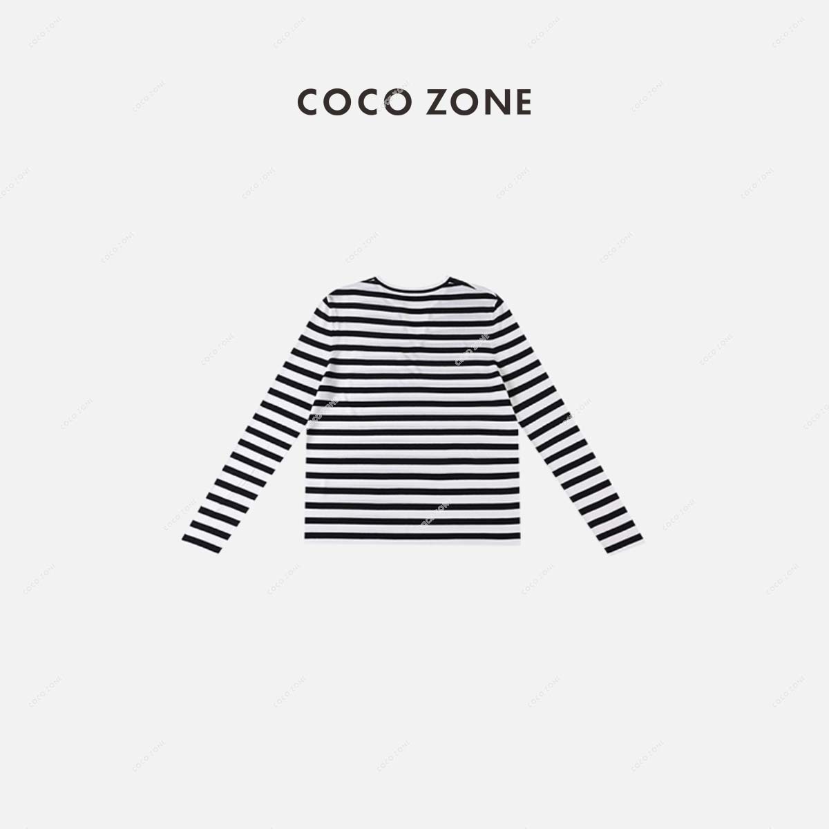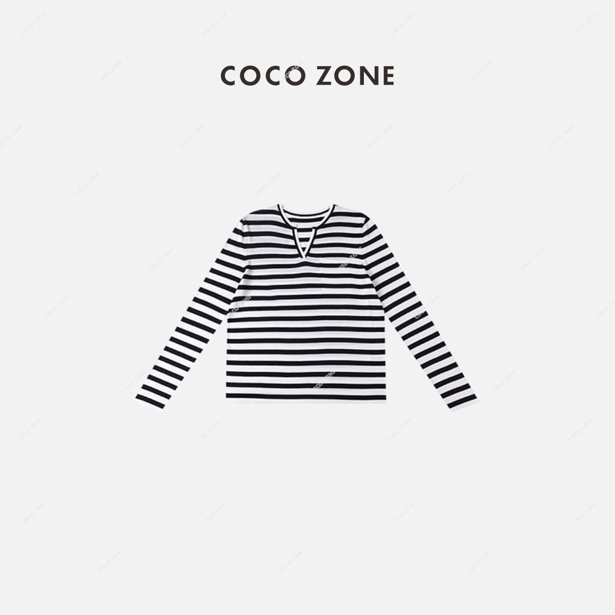 COCO ZONE 通勤风小V领显瘦条纹长袖T恤上衣 23C18687