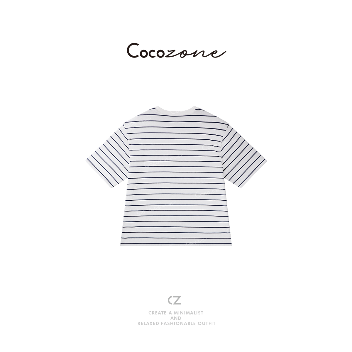 COCO ZONE 刘一一【100棉】自然简约个性条纹圆领T恤 CD1A1184