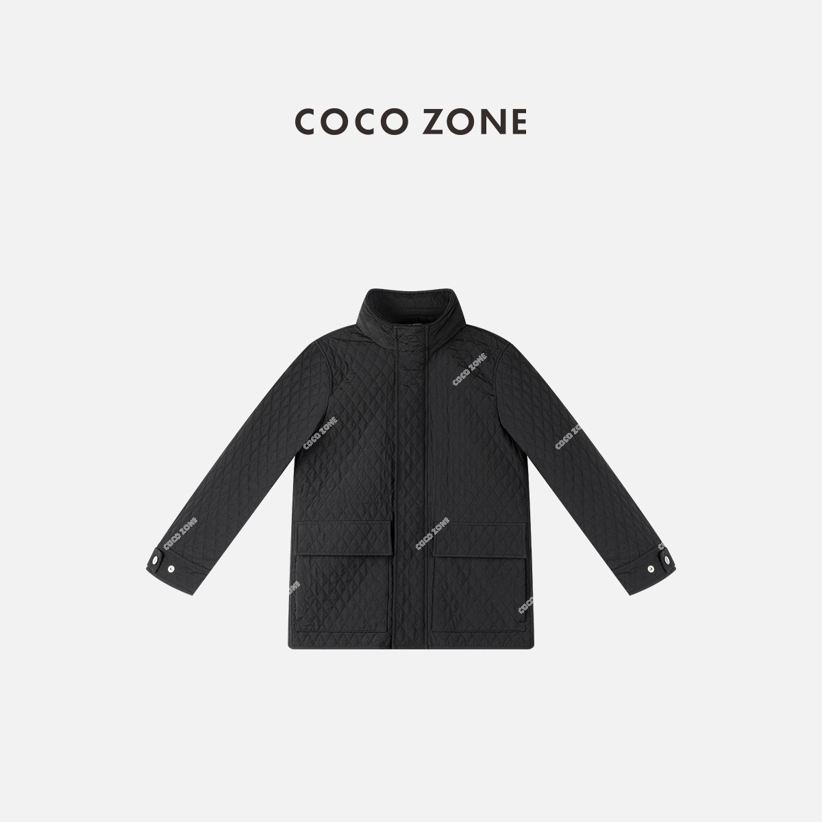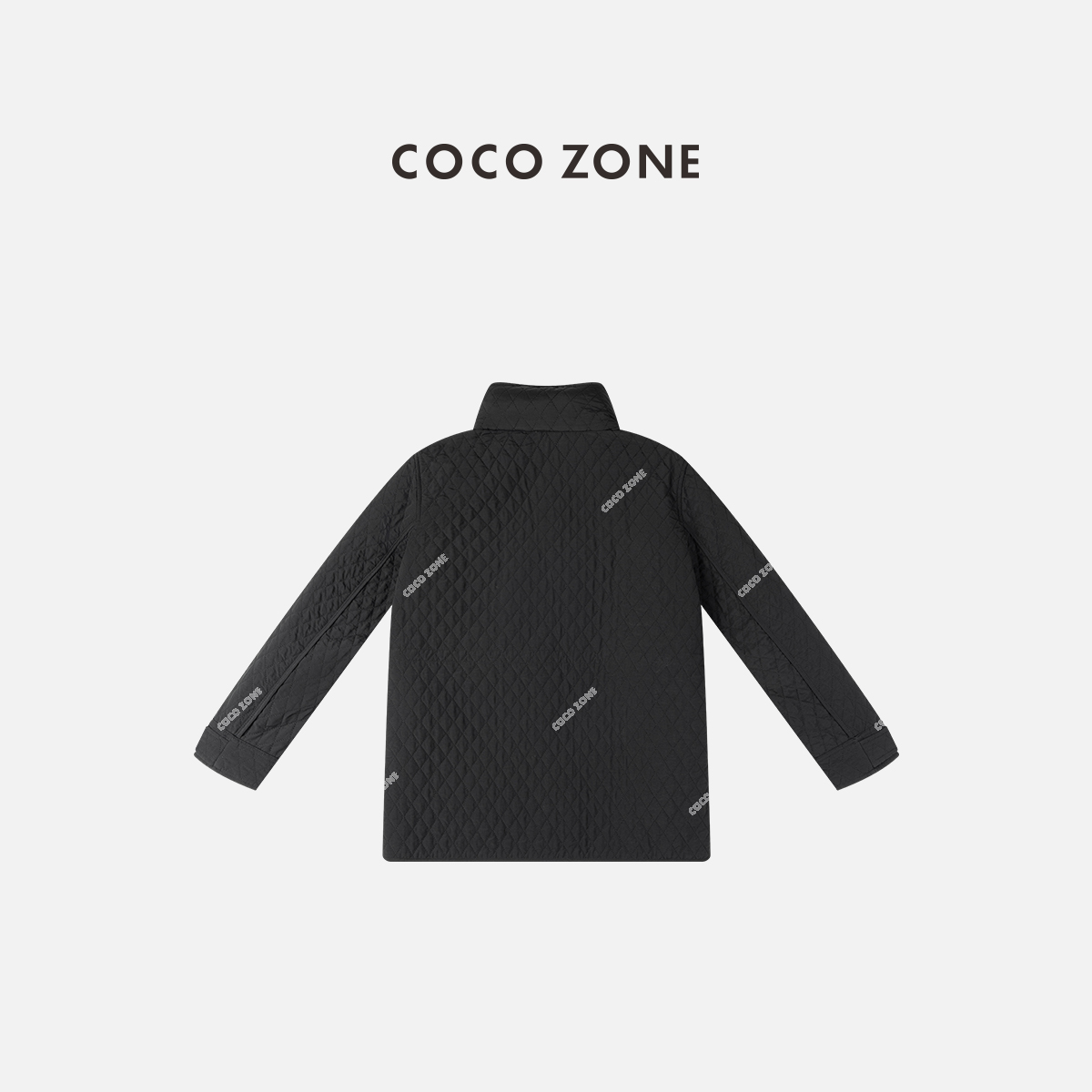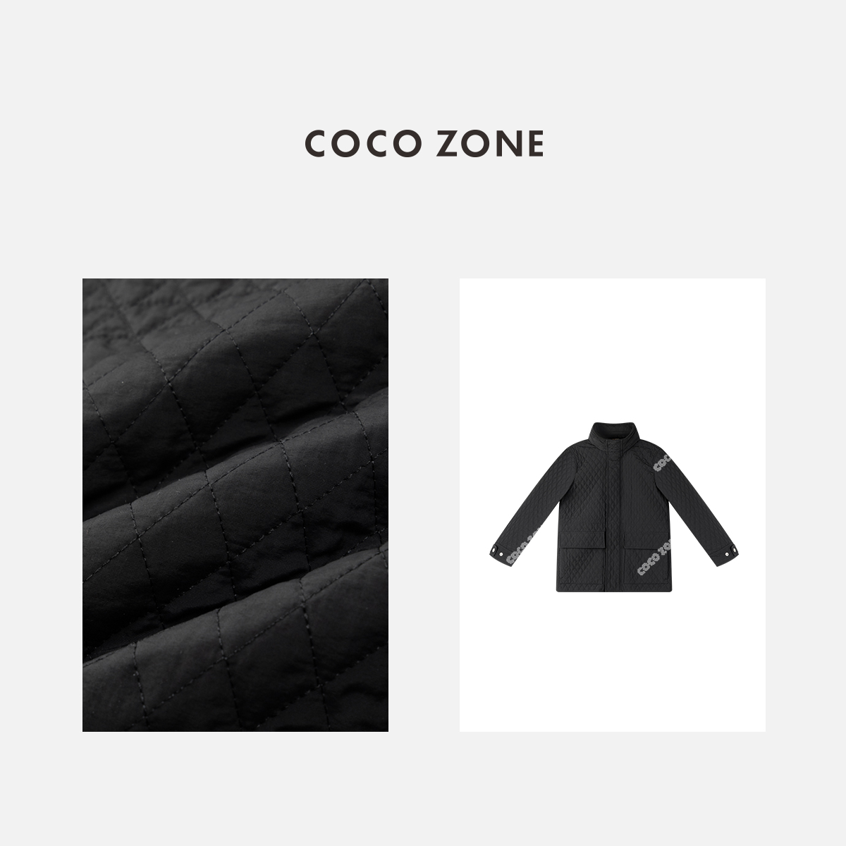 COCO ZONE 设计感菱格连帽棉服撞色拼接长袖上衣CC2C2159