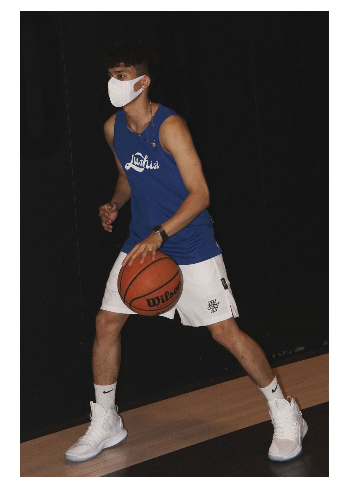 LUSHISI前锋主题美式篮球不过膝四五分短裤速干运动拼接跑步训练