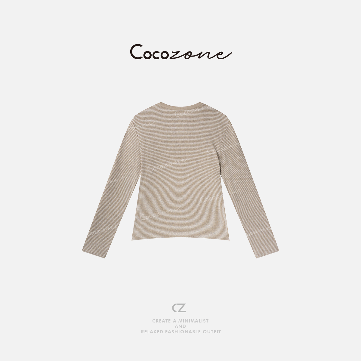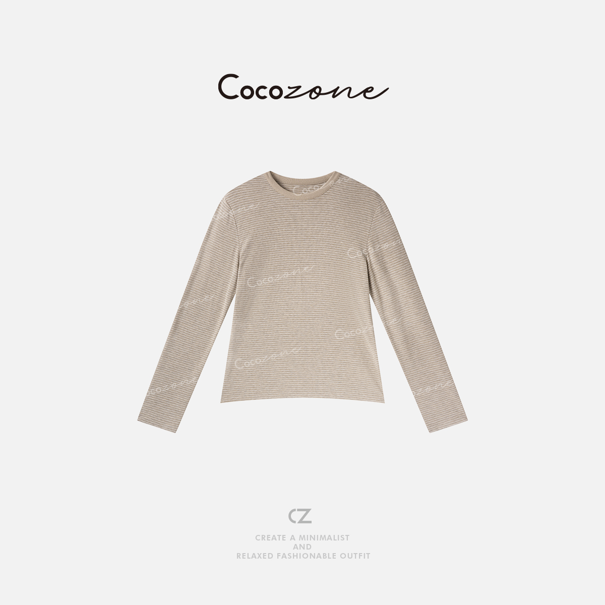 COCO ZONE 刘一一 圆领柔和条纹温暖舒适风长袖T恤 CD1A1187