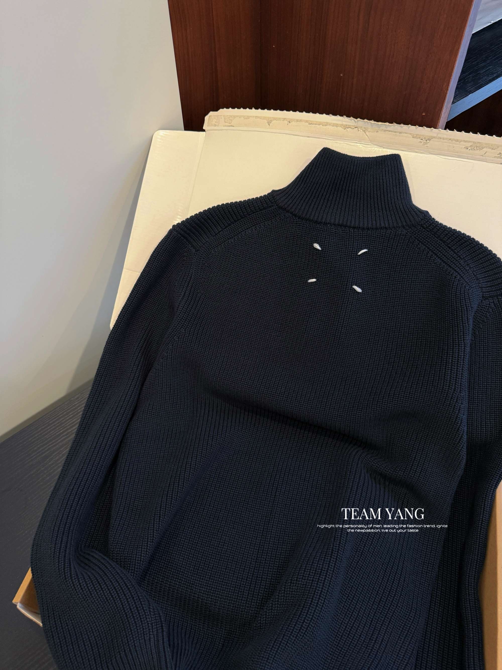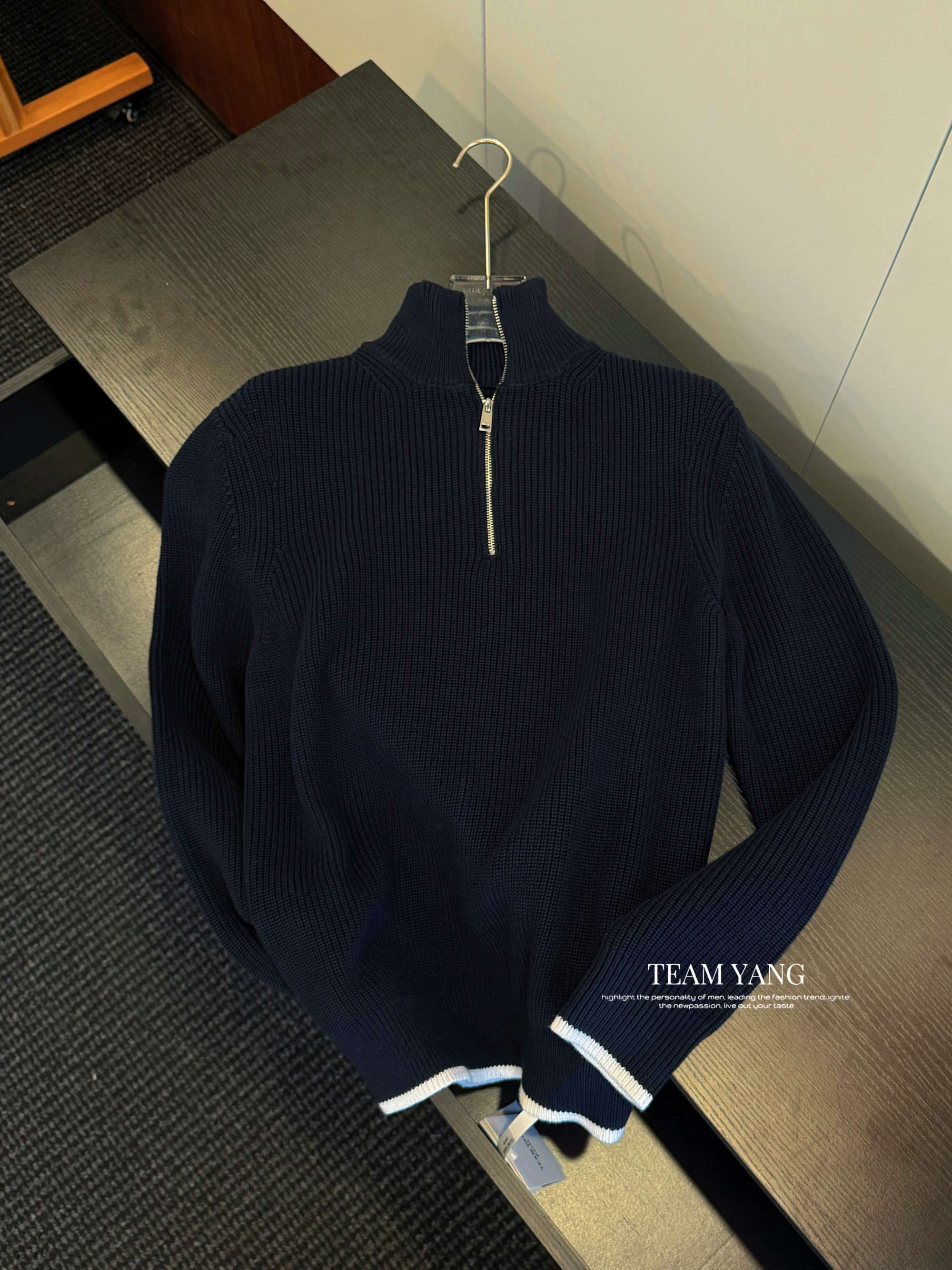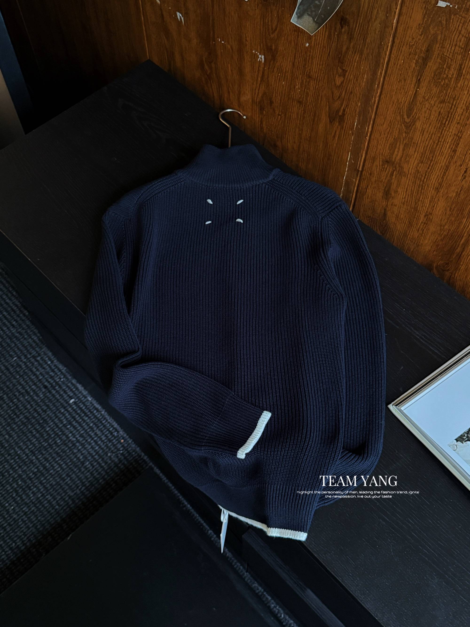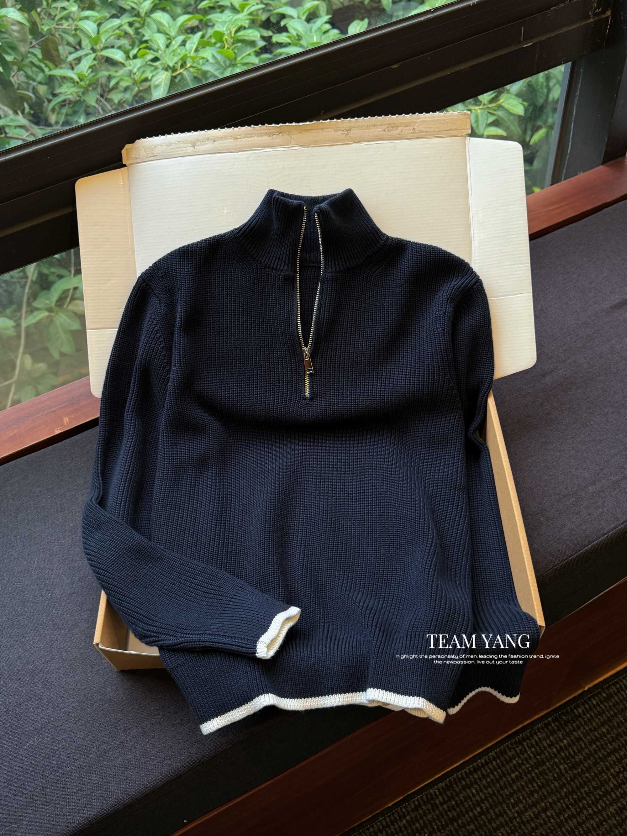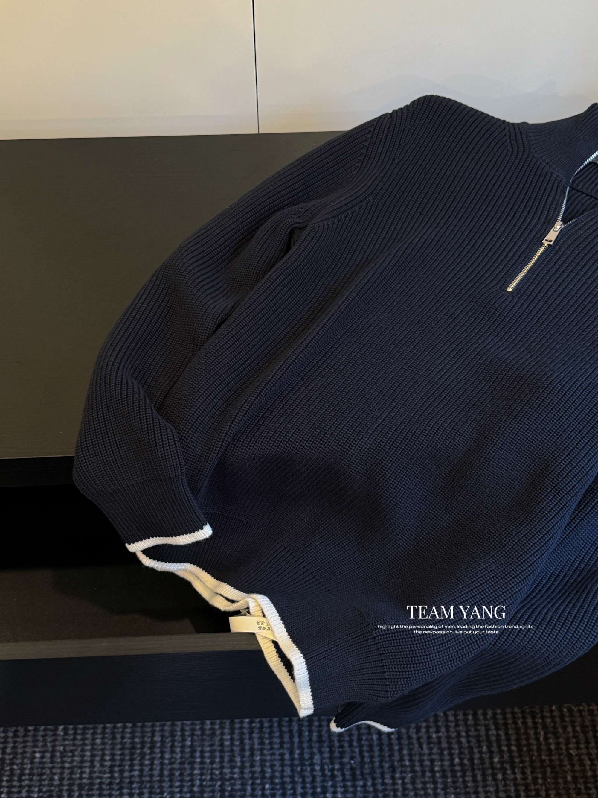 Team Yang-早秋新品竖坑针织拼接慵懒老钱半拉链毛衣9068