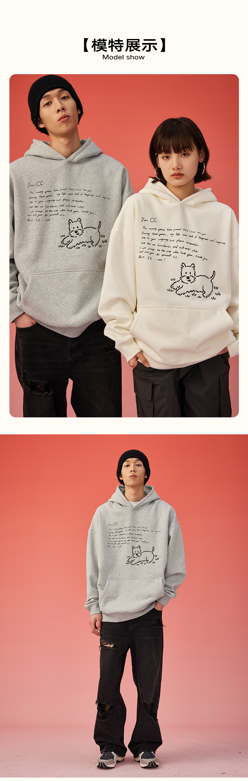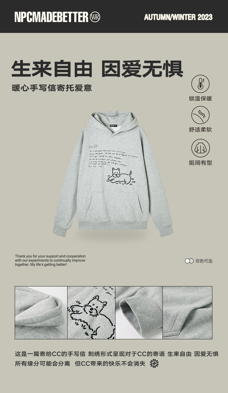 NPC潮牌CC系列小狗手刺绣连帽卫衣秋冬保暖锁温百搭CC3BST20卫衣