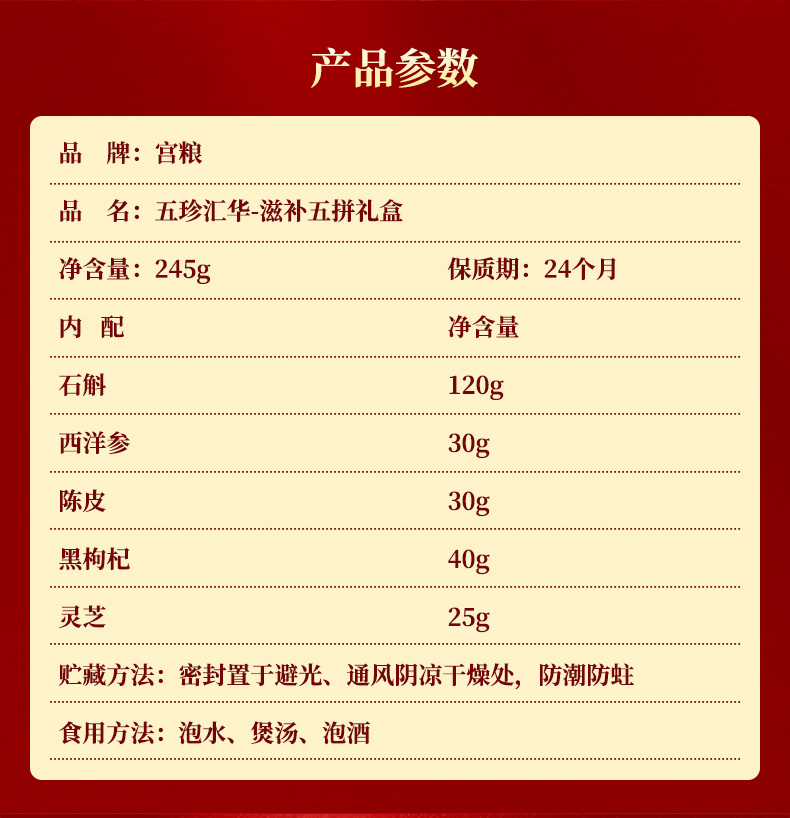 宫粮五珍汇华-滋补五拼礼盒245g