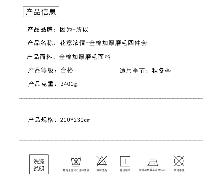 "因为+所以 / Because & So 花意浓情-全棉加厚磨毛四件套"