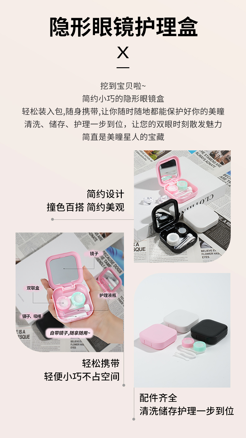 正方形带镜盒隐形眼镜收纳盒